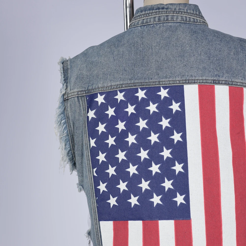 OEM Manufacturer Stylish Summer Top Vest Women's Fashion Sleeveless Jeans Jacket With Button Straight Pocket Denim Shirt