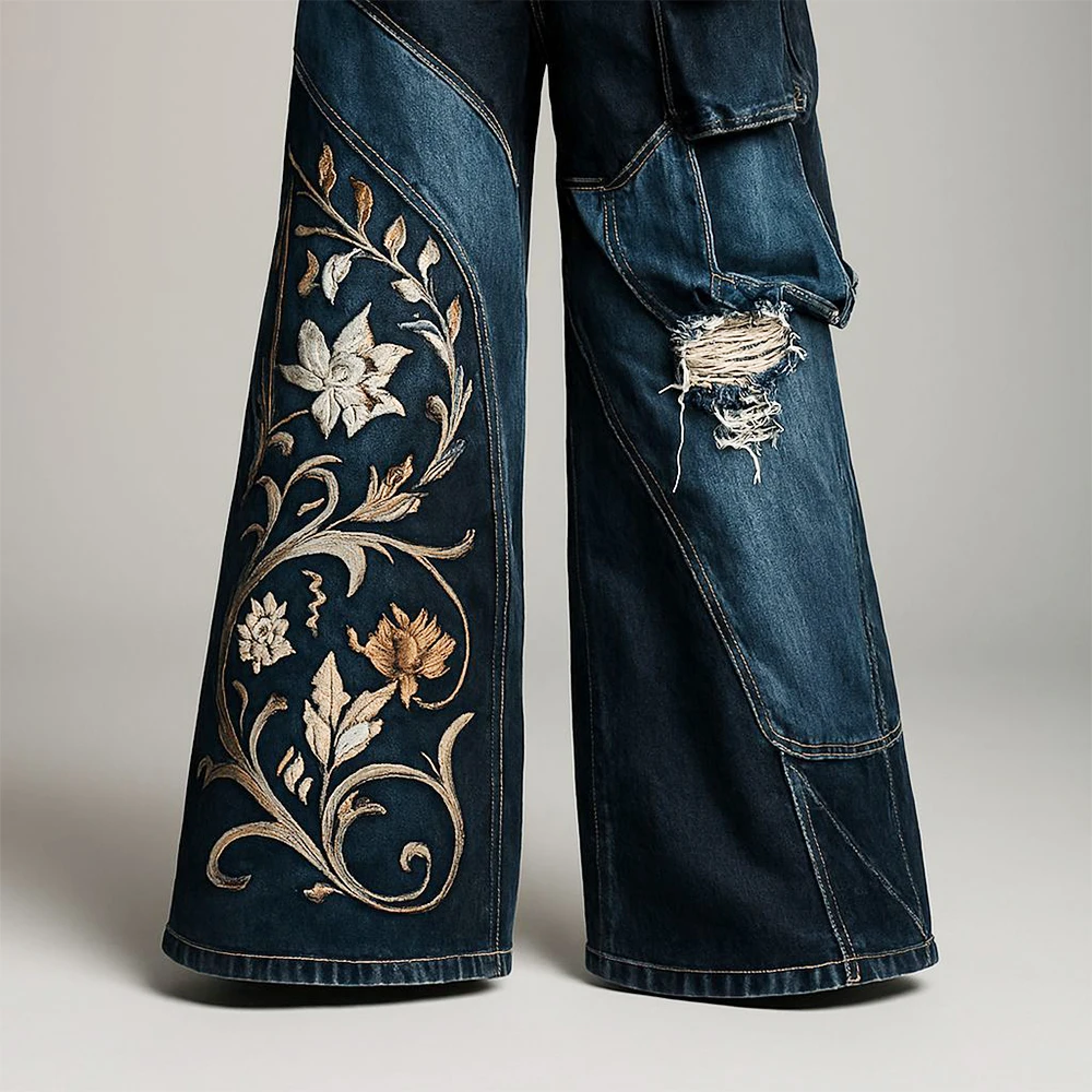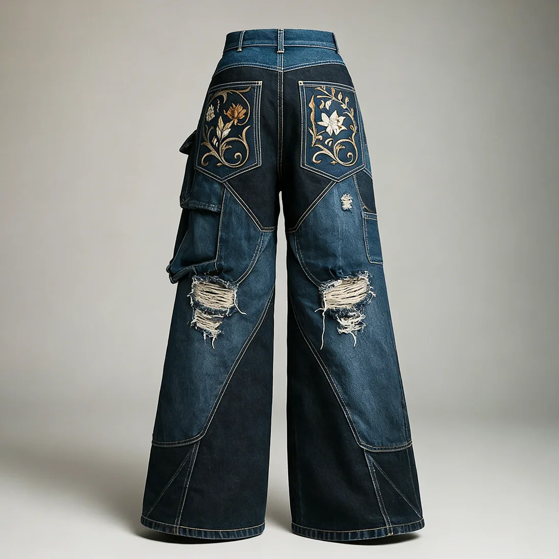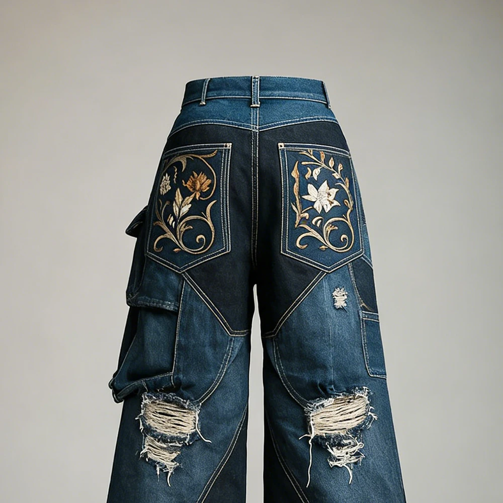 High Quality Vintage 3d Embroidery Y2k Women's Casual Streetwear Denim Jeans Pant High Waist Ladies Oversized Jeans Trousers