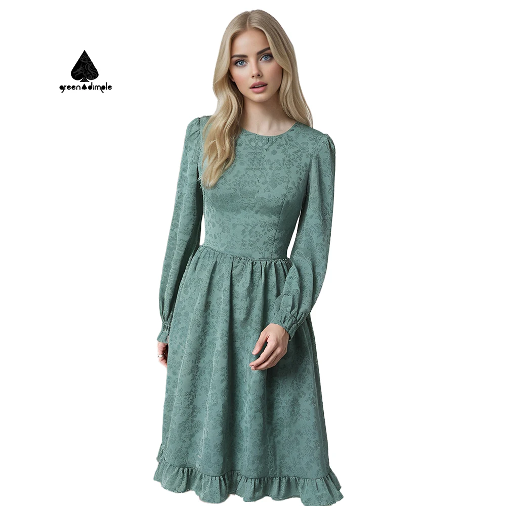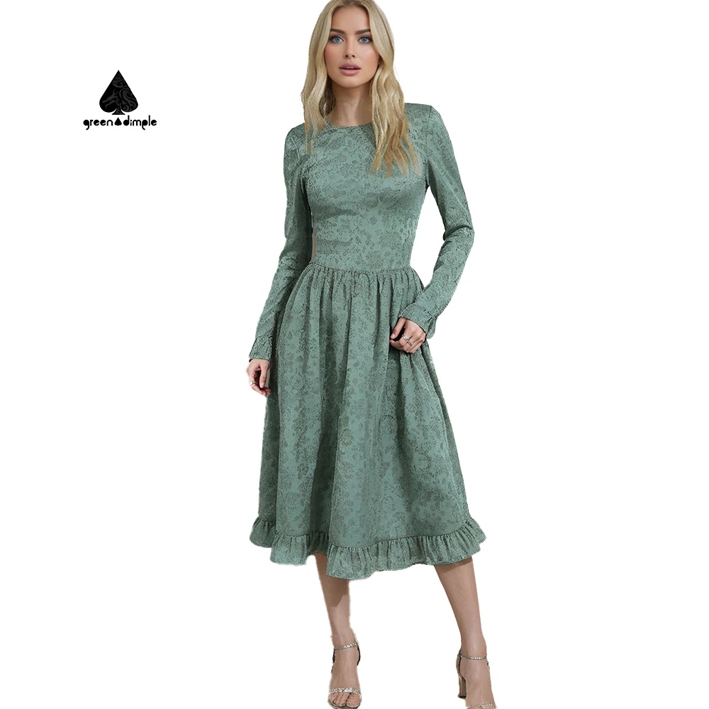 Custom Woman Clothes Dress Manufacturer Elegant Vintage Lady Floral Long Sleeve Elegant Casual Long Dresses