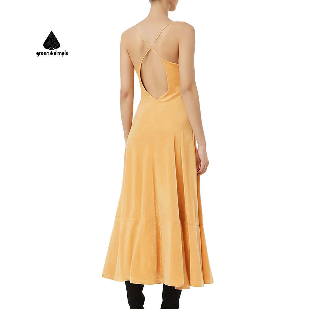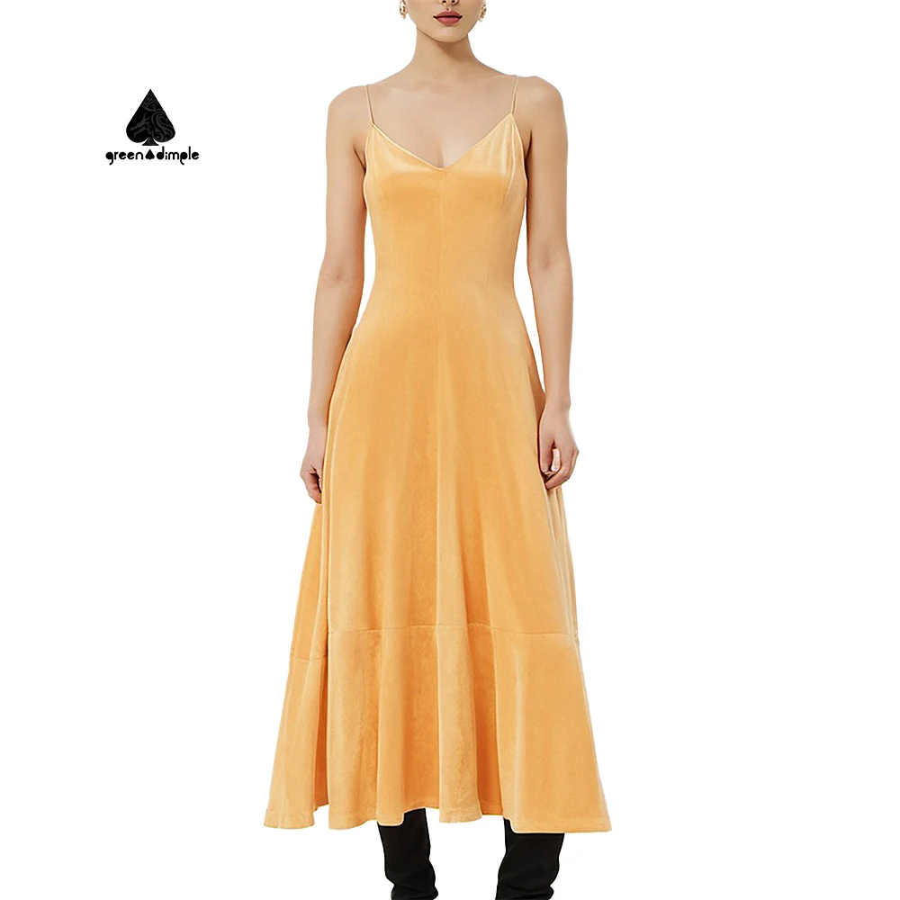 Dresses Manufacturer Female Spaghetti Strap Yellow Sweet Casual Fashion Summer Maxi slip Dress for Women