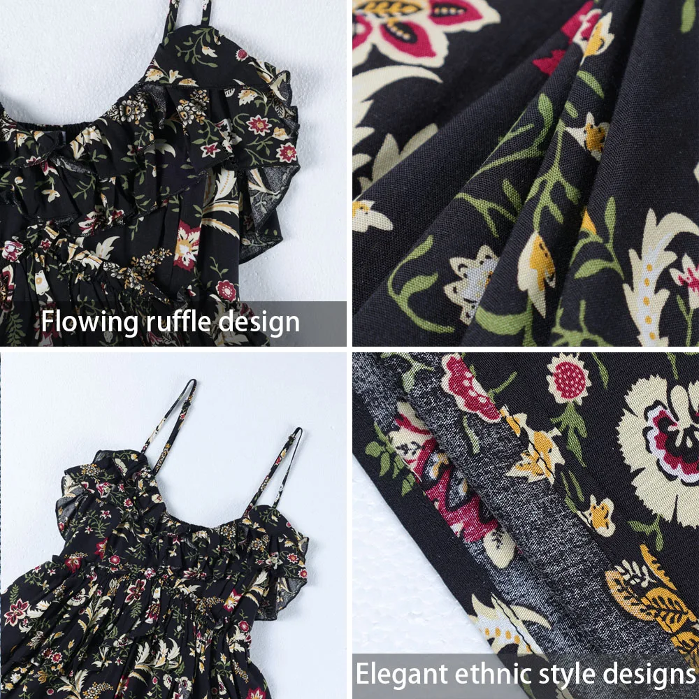 Customize High Quality Ladies Black Elegant Summer Dress 2026 New Trendy Free Size Floral Casual Dresses for Women