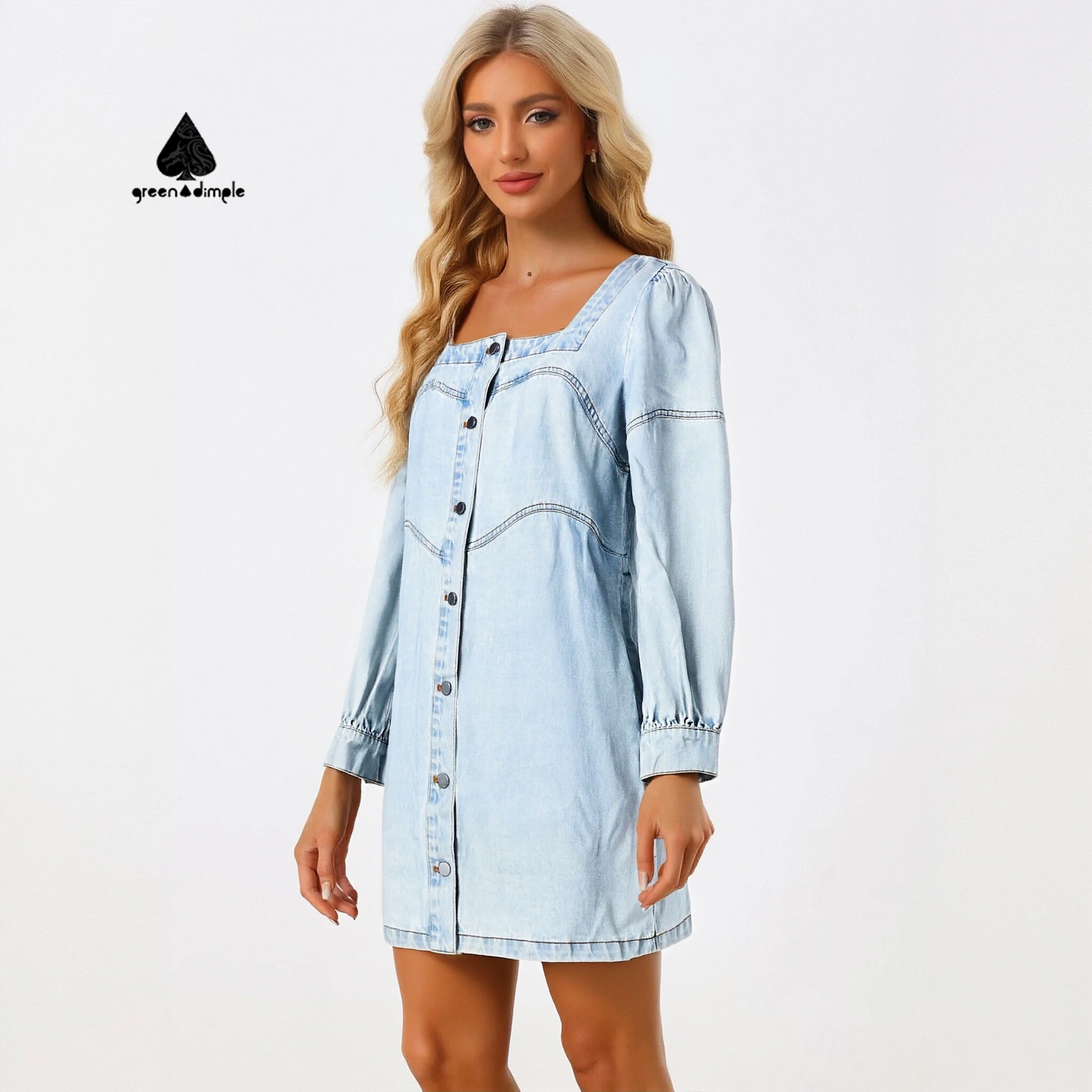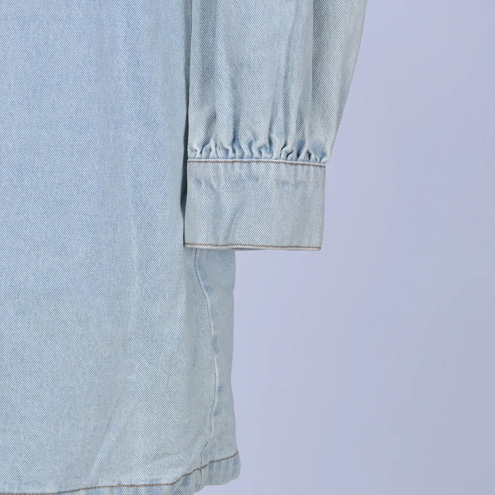 Spring Fall Women's Washed Shirt Denim Dress Casual and Fashionable Front Button Sleeve Loose Casual Ladies Quality Dress