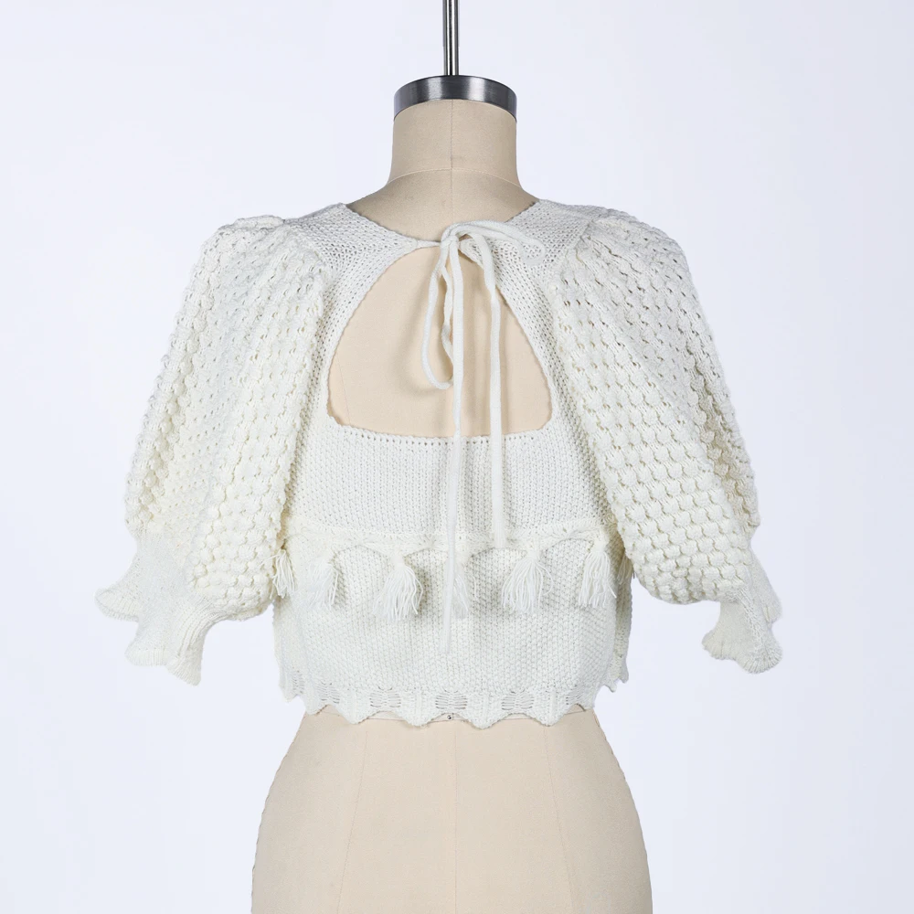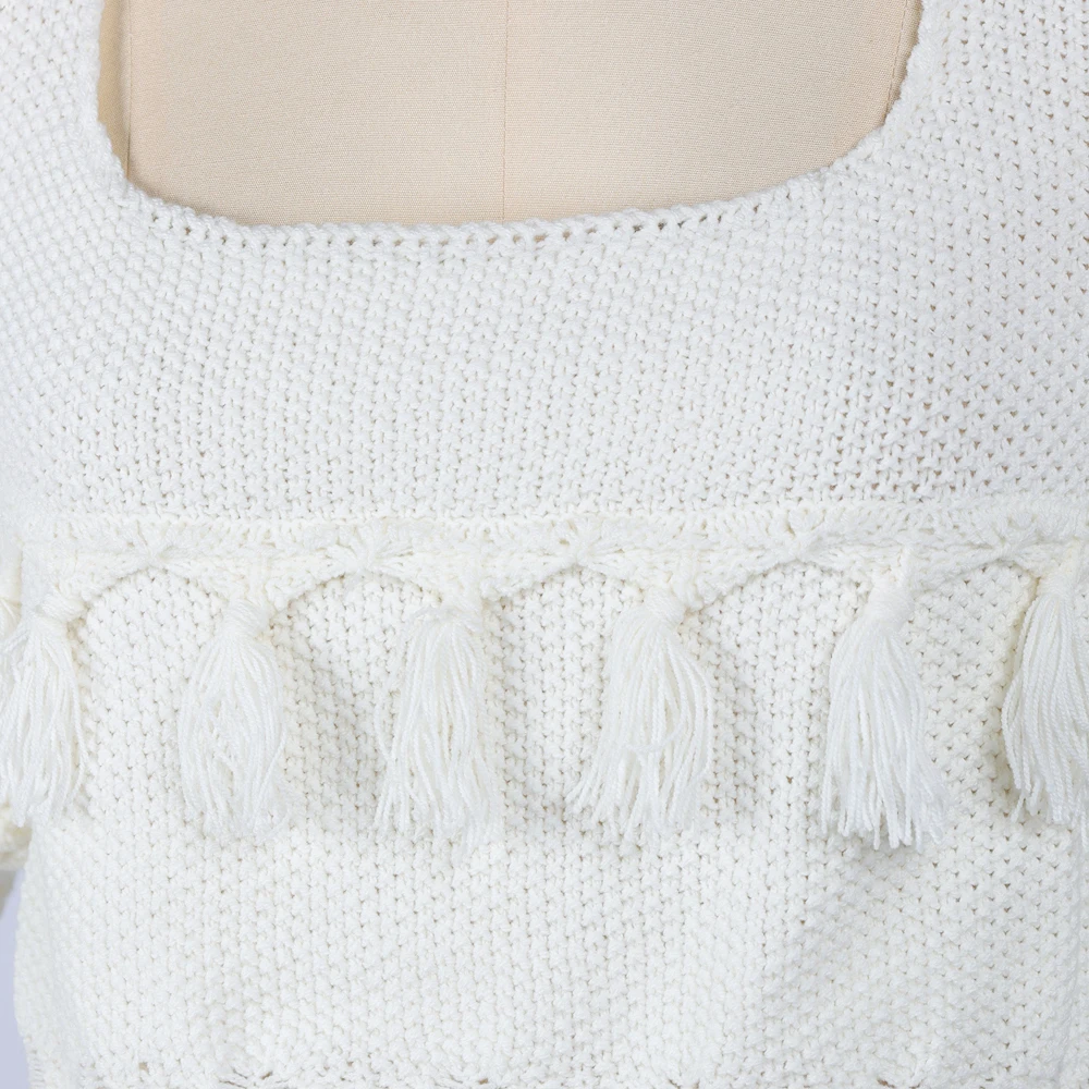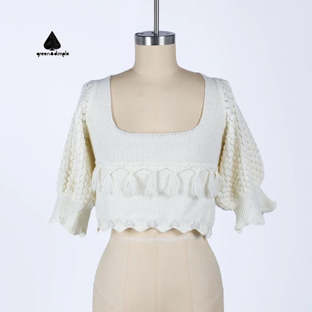Custom Ladies Sweater Short Sleeve Knitwear Square Neck Ladies Clothes Fashion Knit Top Pullover Women Knitted Sweater