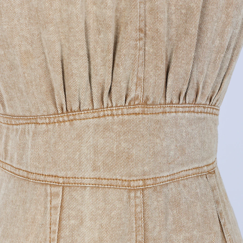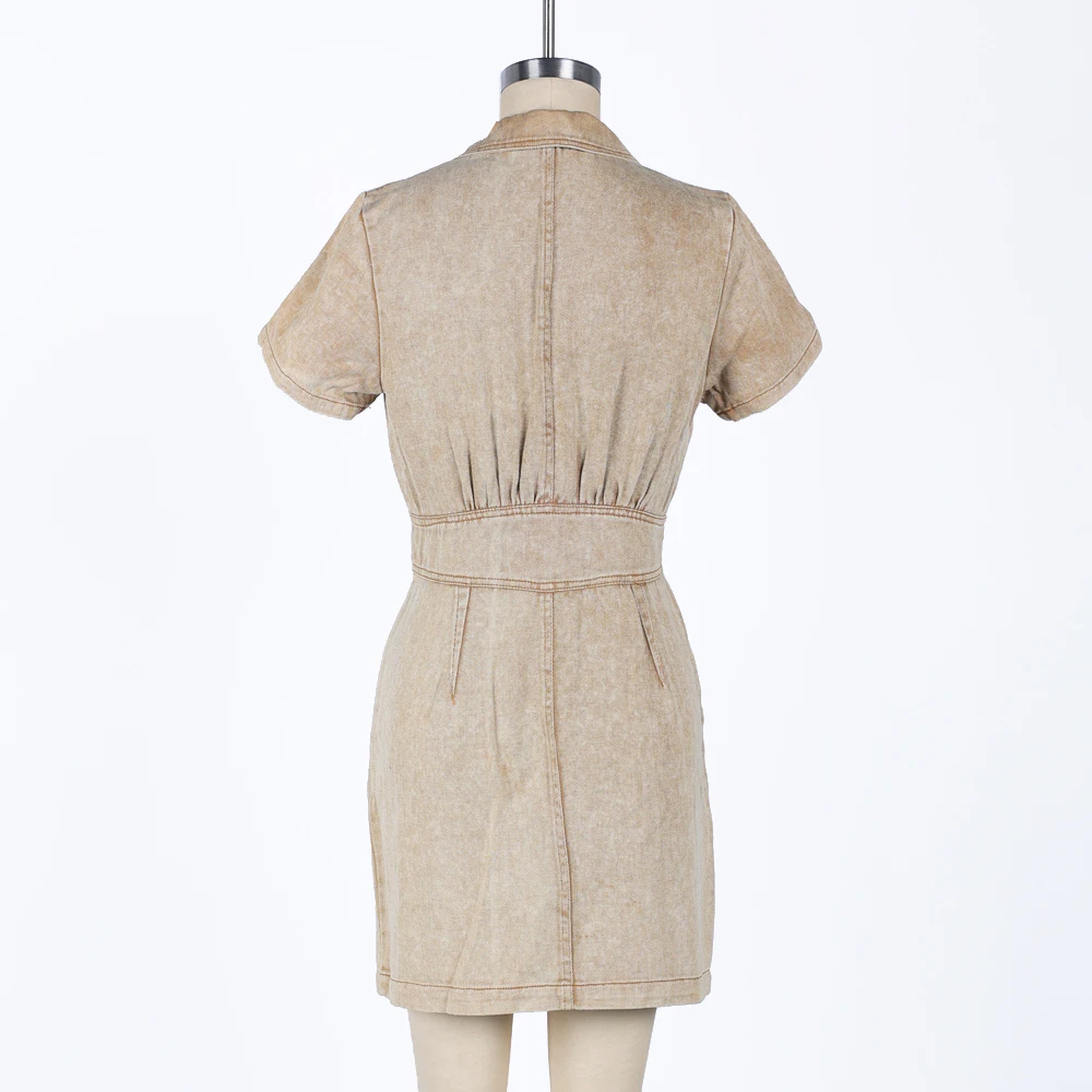 Custom Jean Dress for Women's Denim Dresses Fashionable Short Sleeved Ladies Mini Skirt Washed Distressed Denim Dress