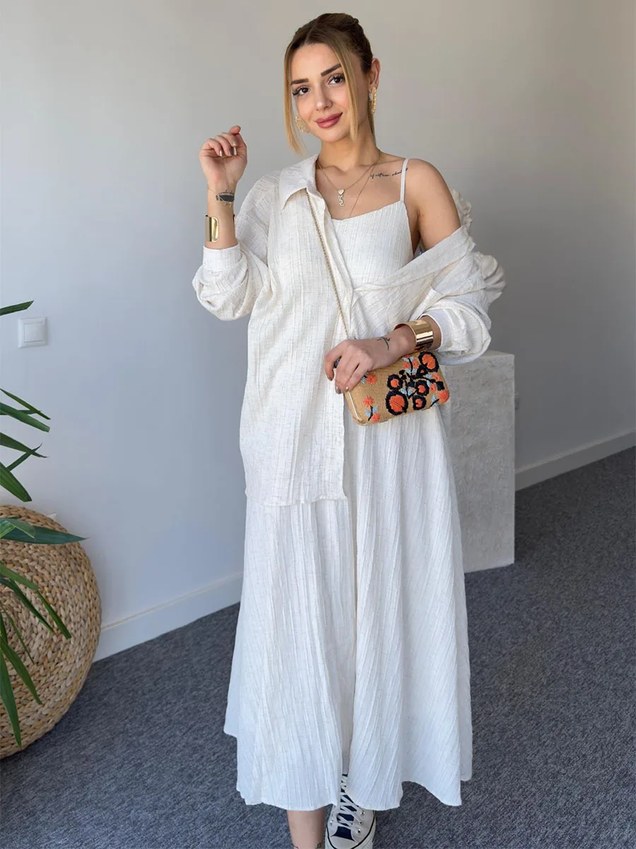 2025 European and American Women's Fashion Casual Temperament Wrinkled Loose Long Suspender