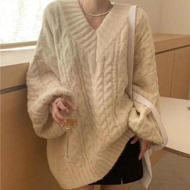 Autumn Winter Japanese Korean Style Cross-Border Soft Knitted Anti-Pilling Front Logo Lazy Version Loose Plus Size Pullover Coat
