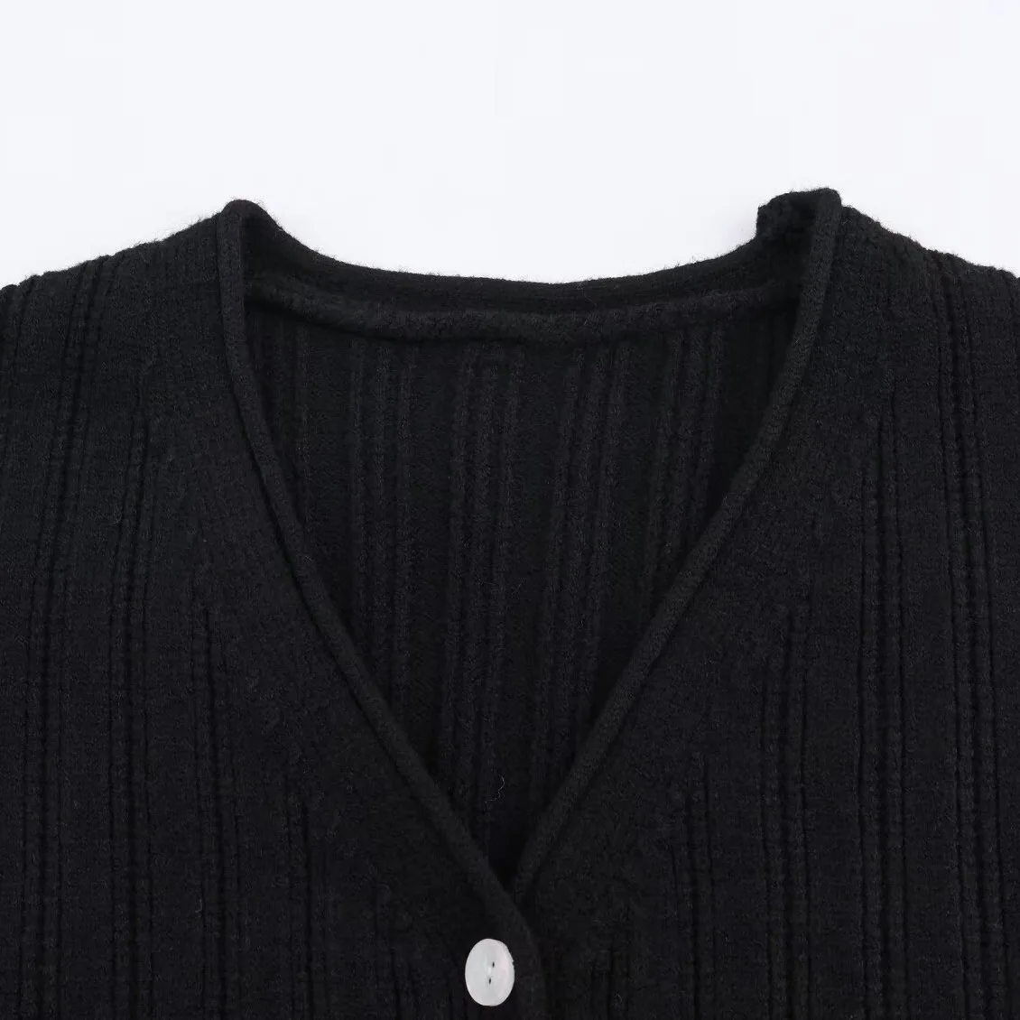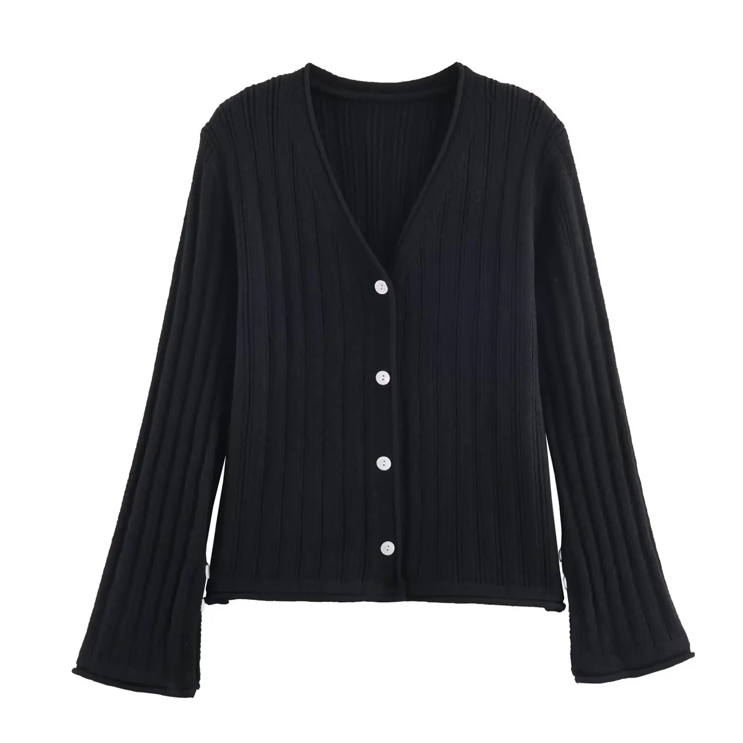 Women 2025 Autumn New Fashion Regular Sleeve Button V-neck Knitted Cardigan Vintage Casual Chic Tops