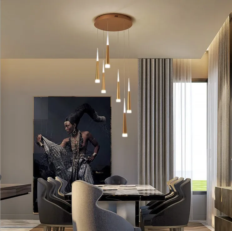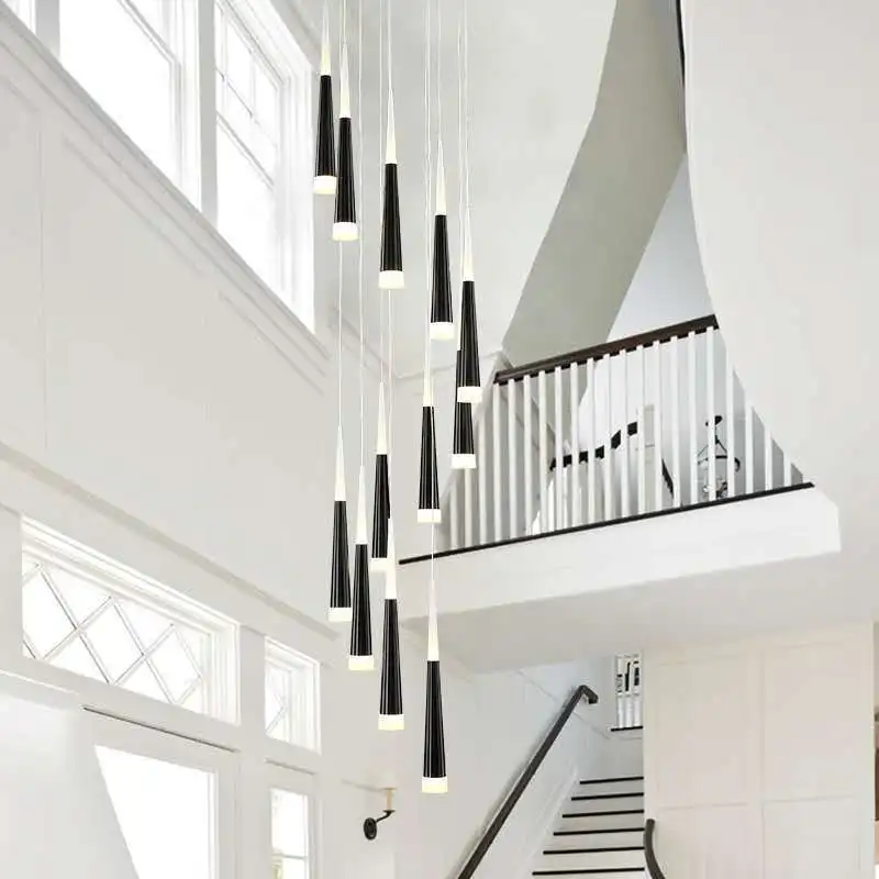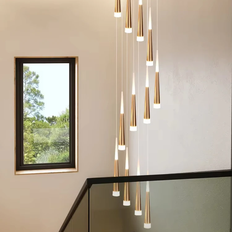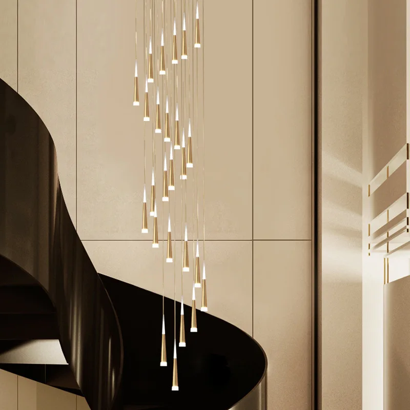 JACKSUN Aluminum Meteor Shower Rotating Stair Chandelier for Living Room Villa Loft Simple Long Duplex Corner for Stairwell