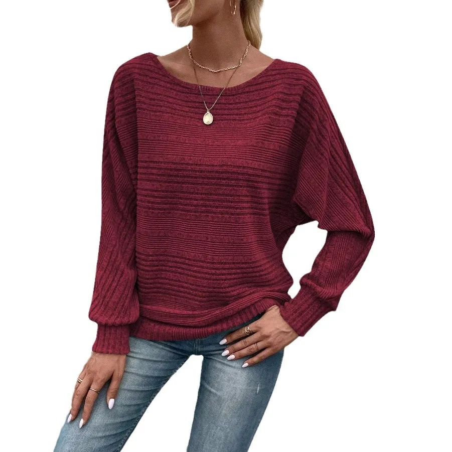 European and American Women's Casual Solid Color Long Sleeved Round Neck Knitted Pullover Sweater Comfortable Spliced Design