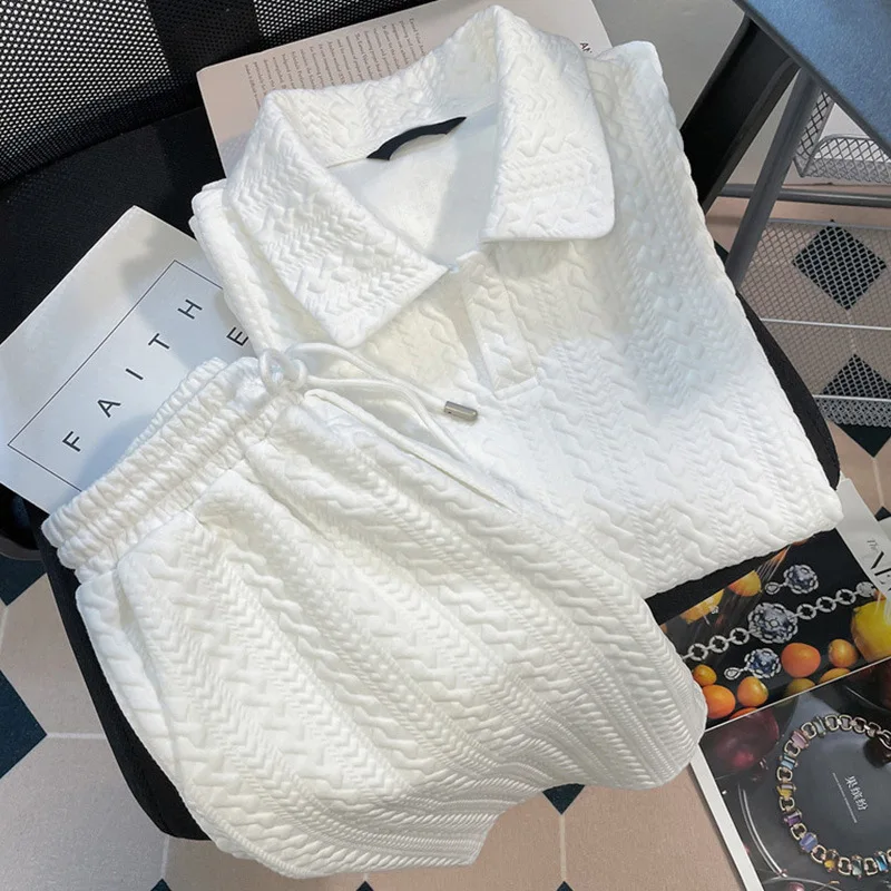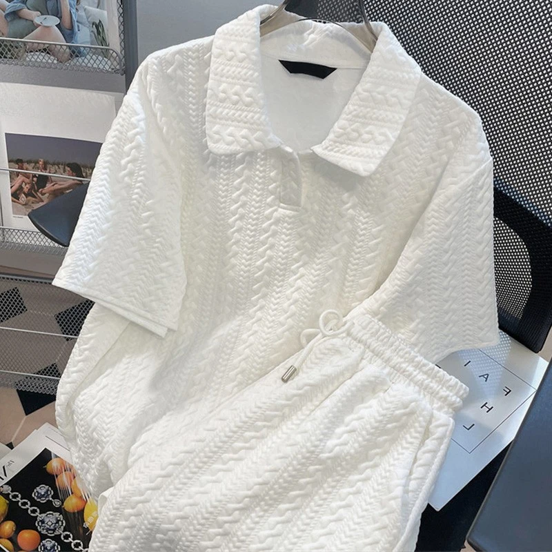Summer Elegant White Jacquard Women's Sets Casual Sports Zipper Polo Shirt and Shorts 2 Piece Sets Women Outfit Tracksuits