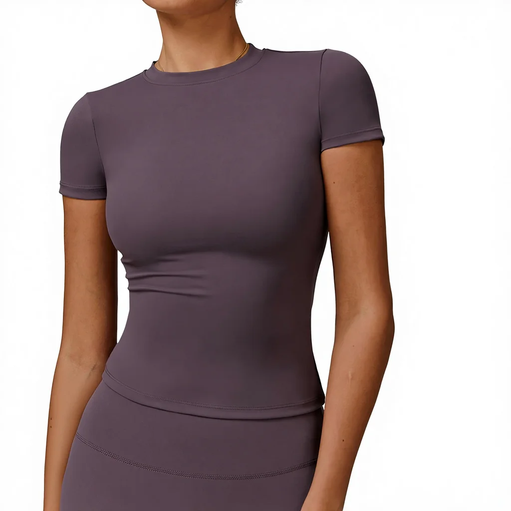 Spring Breathable for Solid Short Nine Quarter Sleeve Quick-Dry Yoga Wear Fitness Top Cover-Up Outdoor Running Sports