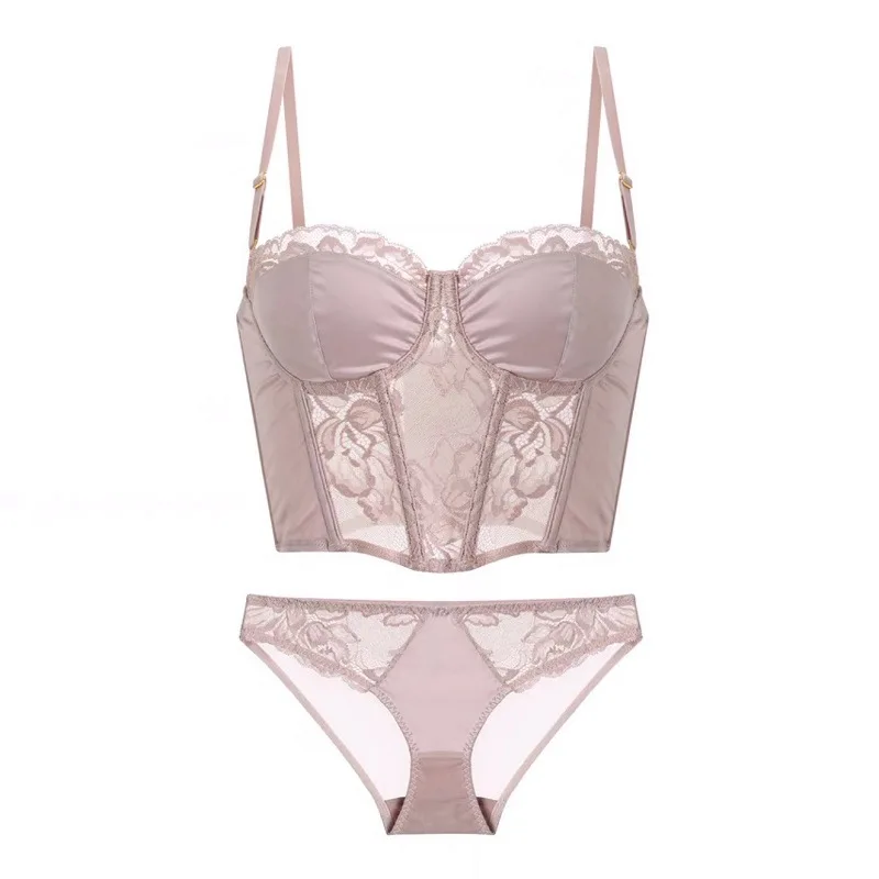 Wholesale Waistle Underwear Women's JENGS Small Chest Gathered Lace Trim Fishbone Body Shaping Sexy Bra Suit