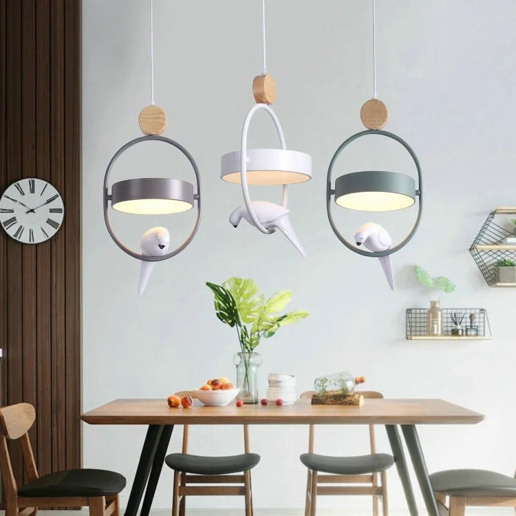 JACKSUN Nordic Style Three-Head Dining Room Chandelier New Modern Bird Pendant Lights for Children Room Bar Counter