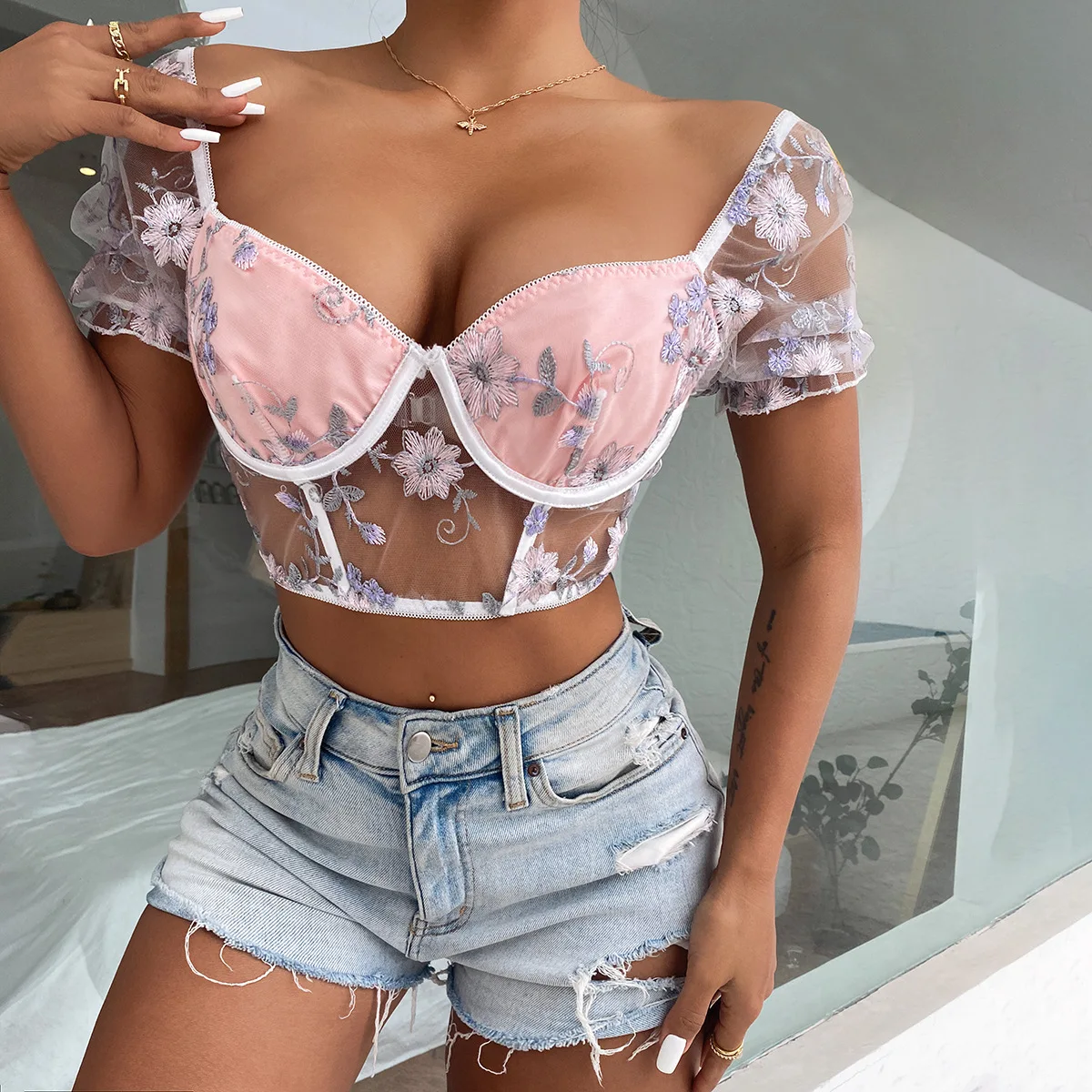Direct Selling Deep Love Pink Ladies Push-up Bra with Lace Decoration Women's Seamless T-shirt Tank Tops Light Control Level