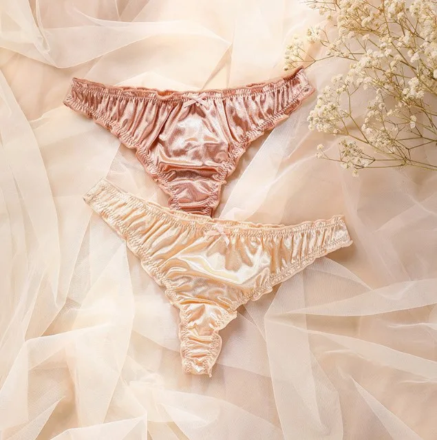 JENGS Ladies Sexy G-String Panty Mid-Rise Breathable Satin Thong Customizable Logo Women's Underwear