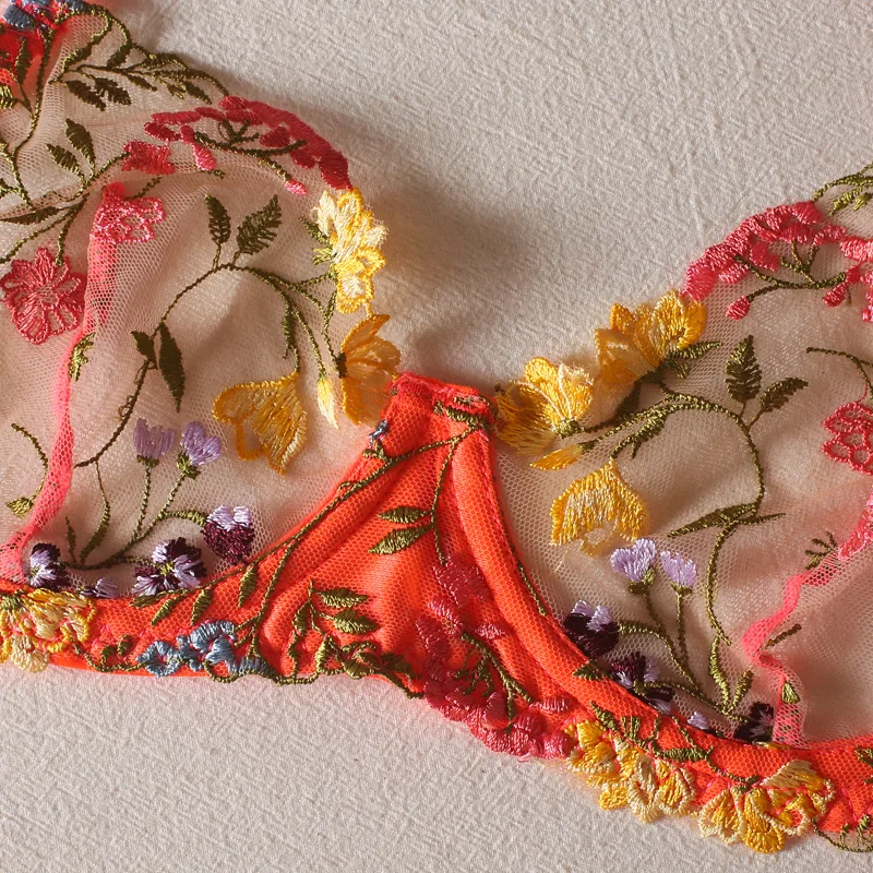 JENGS New Summer Floral Color Erotic Lingerie Underwire Sexy Underwear Set