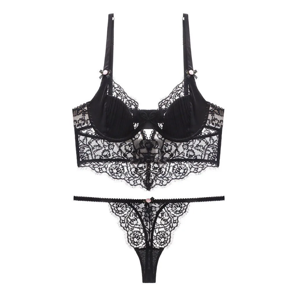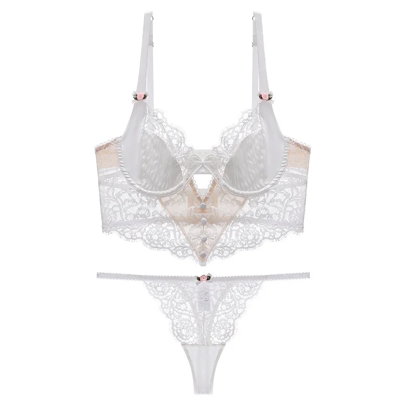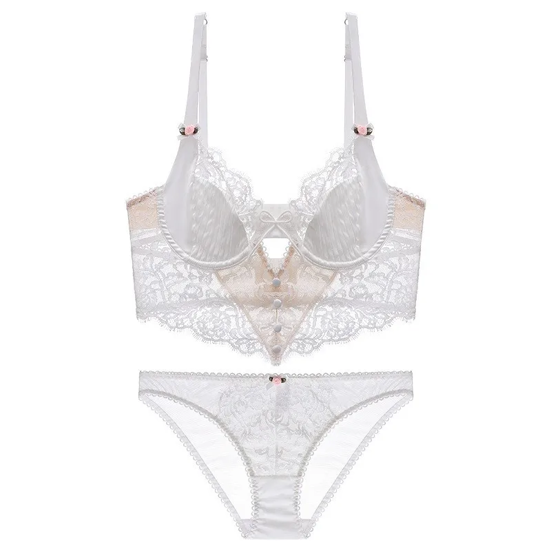 JENGS 2025 Wholesale Girls Bra Brief Sets New Design Eyelash Lace Lingerie Thin Sexy Underwear Button Decoration Thongs Panties