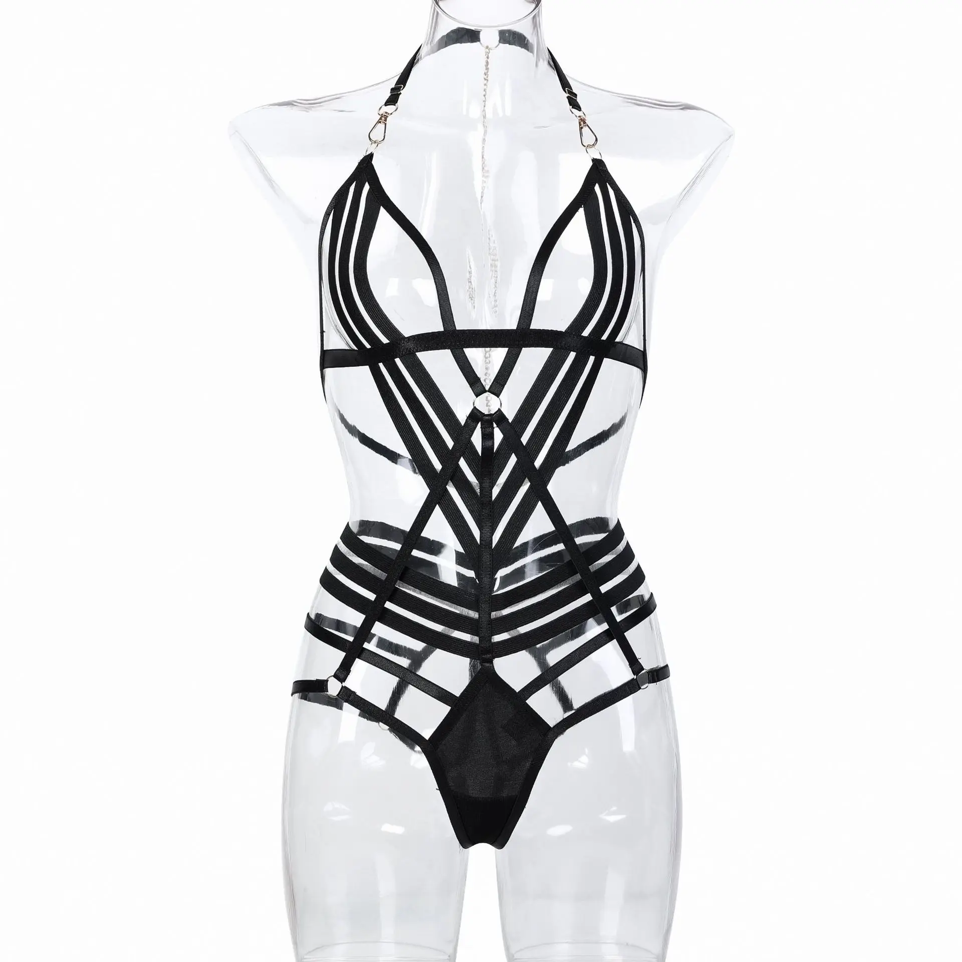 JENGS New Style of Fun Transparent Sexy Hot Fashion Show Seductive Black Hollow Back Passionate Sexy Women Teddy Lingerie
