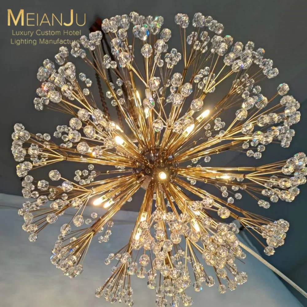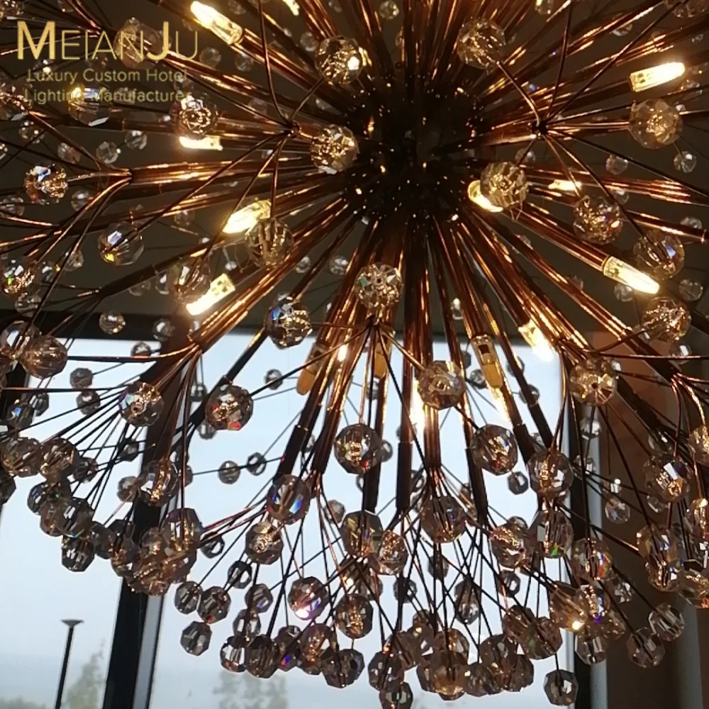 Wedding Hall Chandelier Hotel Hanging Pendant Light Customized Amber Crystal Chandelier Lighting for Lobby