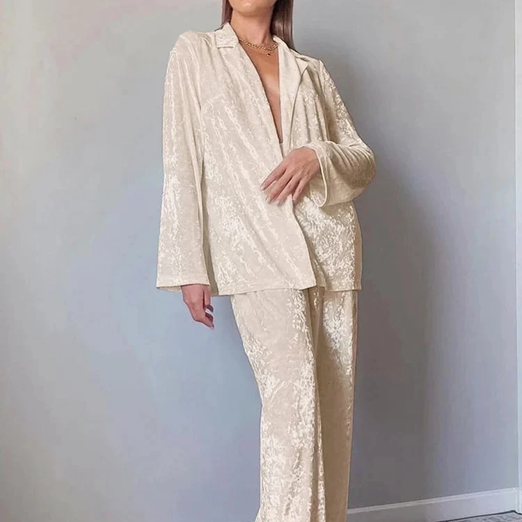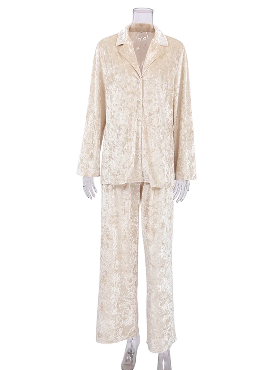 New Velvet Sleepwear Long Sleeve Women Sets Lapel Nightwear Women's Pajamas Knitting Trouser Suits Single Breasted Home Suit