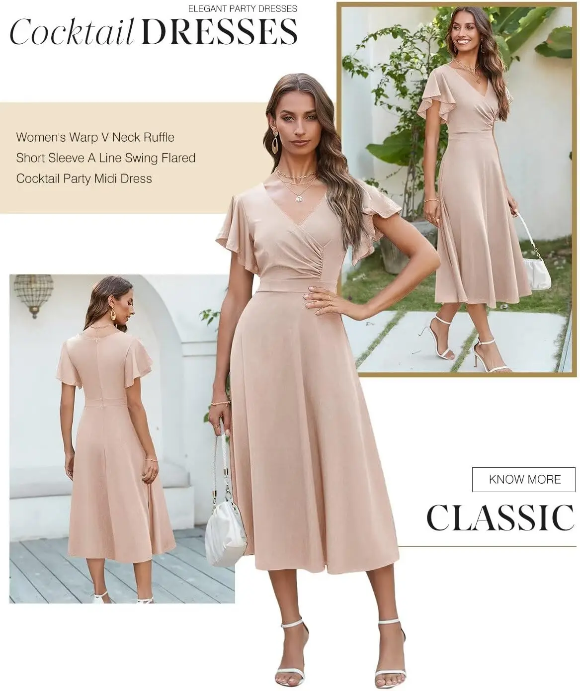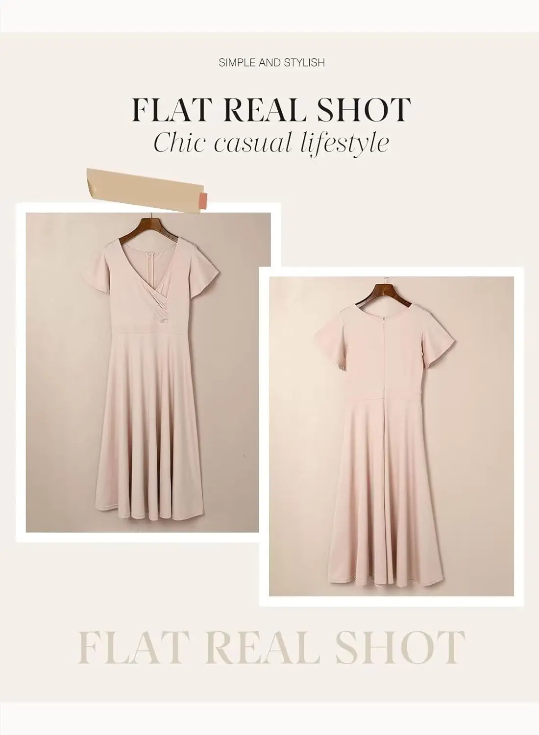 Elegant Women's Chiffon Wedding Guest Dress with Front Logo V-Neck Skater Style Short Sleeve for Summer for Careers