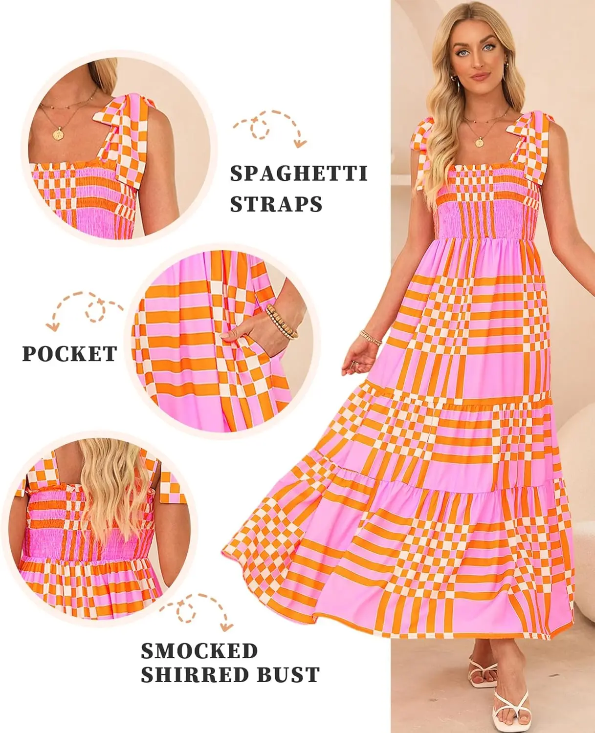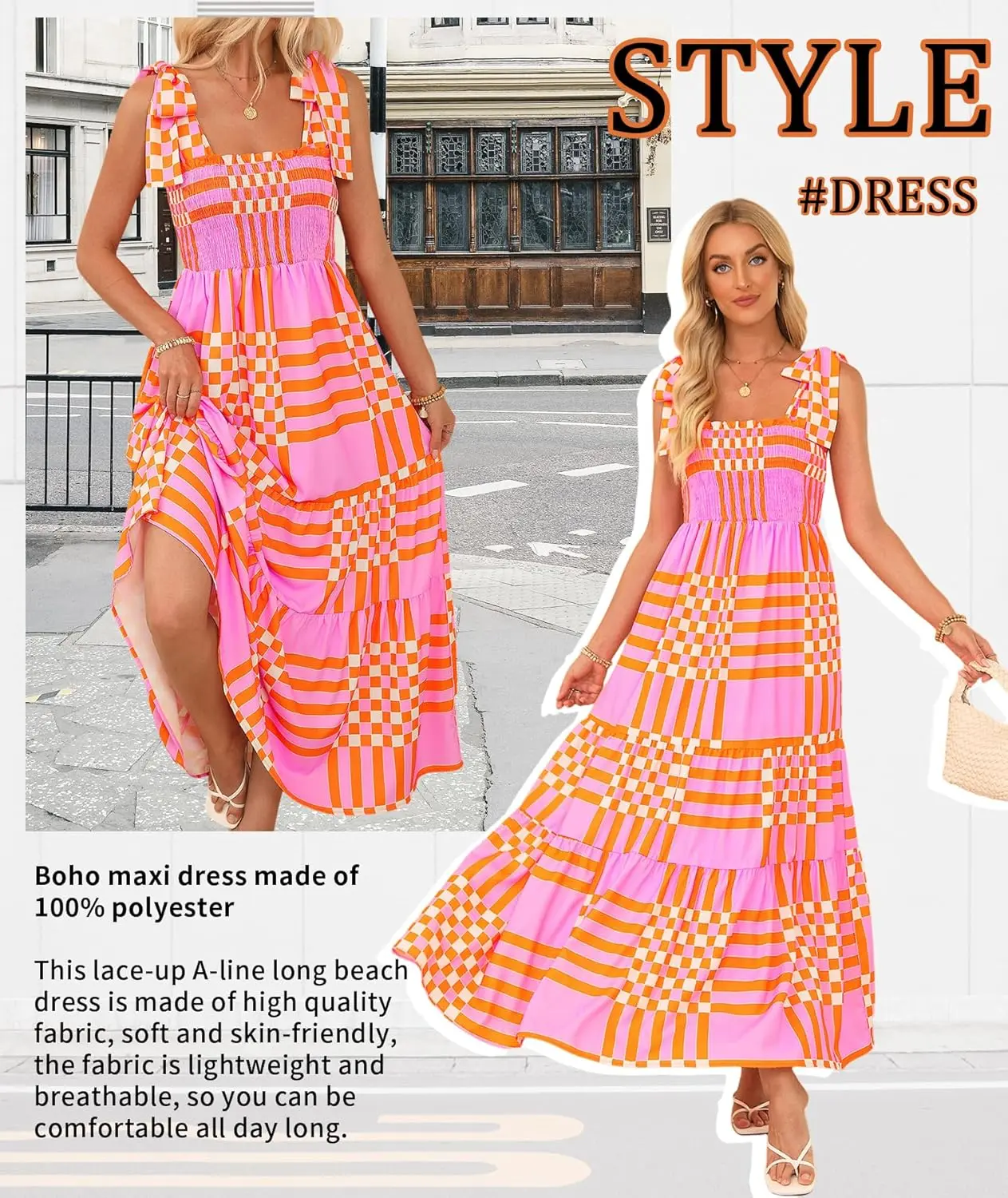 Women's Winter Casual A-Line Maxi Dress Square Neck Spaghetti Straps Lace Bohemian Style Chiffon Flowy Sun Dress Beach Style