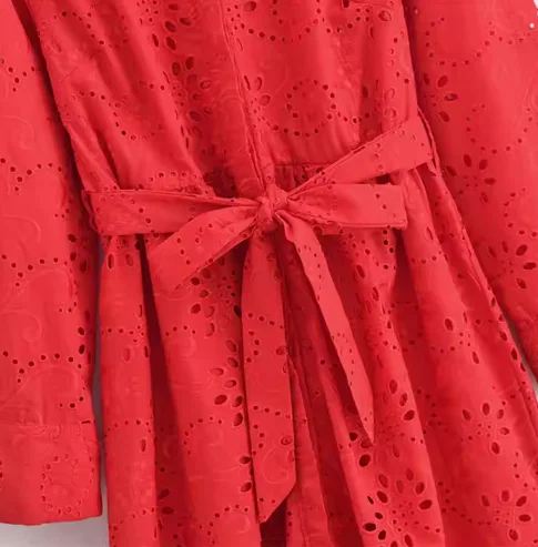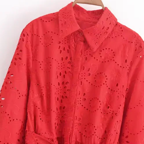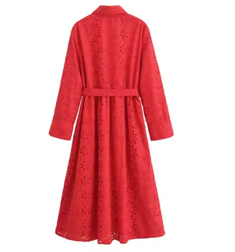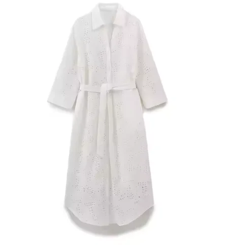 High Quality Vintage Midi Dress Embroidered Waistband Loose Casual Bohemian Lace Button Bow Hole Breathable Solid Long Ruffles
