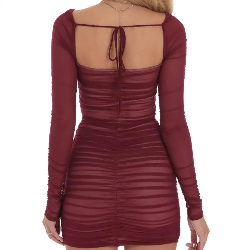 Ssexy Backless Dress for Autumn and a Solid-Color High-Elastic MeshPpattern Cinched Waist Dress That Naturally Wraps the Hips