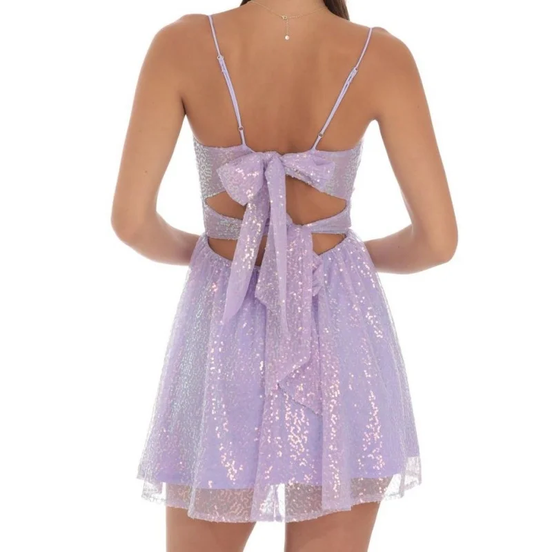 Factory Customized Fashionable Sexy A-Line Short Skirt Adjustable Camisole Mini Dress Sequin Woven Plain Eco-Friendly