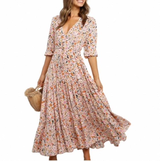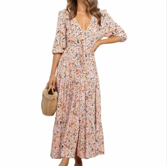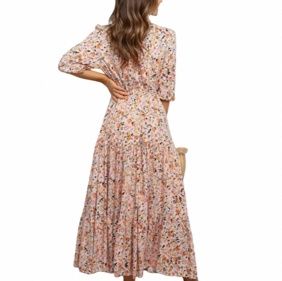 High Quality Wholesale Mid-Length Printed Jumpsuit Loose Long Skirt Exclusive Floral A-Line Natural Waistline