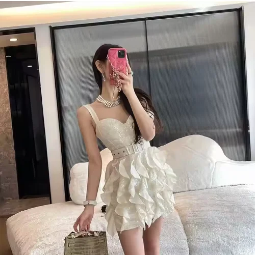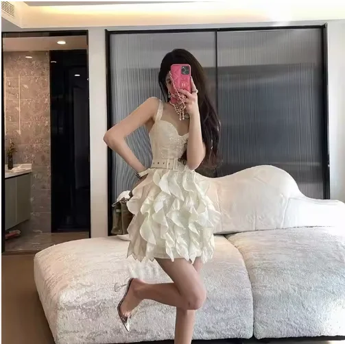 New Arrival Luxury Custom Women's Off-the-Shoulder White Elegant Dress Luxurious Ruffled Spandex Fabric Lace for Birthday Gown