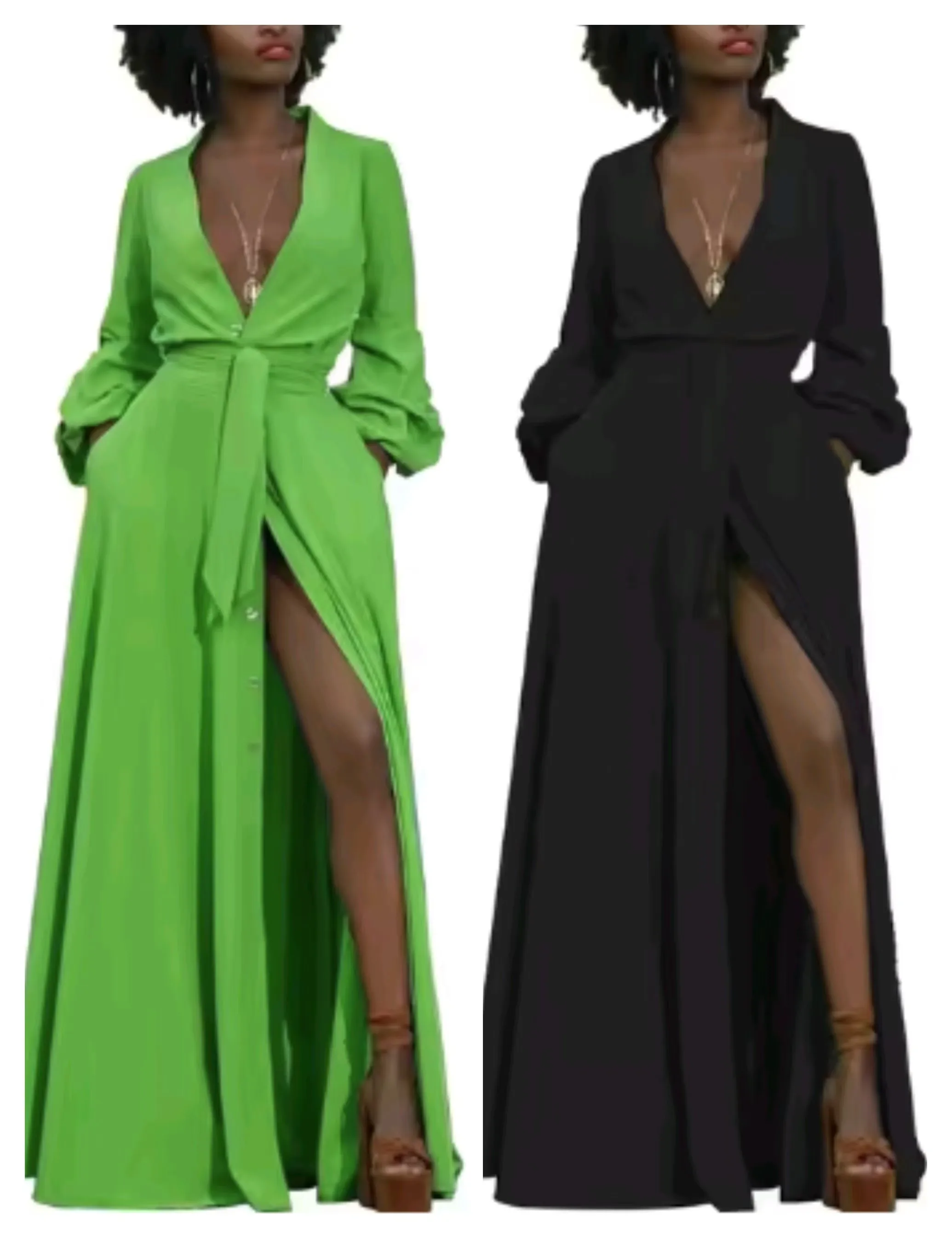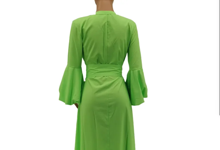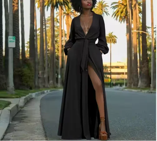 Autumn New Arrival Bohemian Midi Dress for Women Solid Color Long Sleeve Deep V-Neck Breathable Casual Split Lace Eco-Friendly