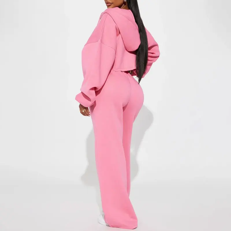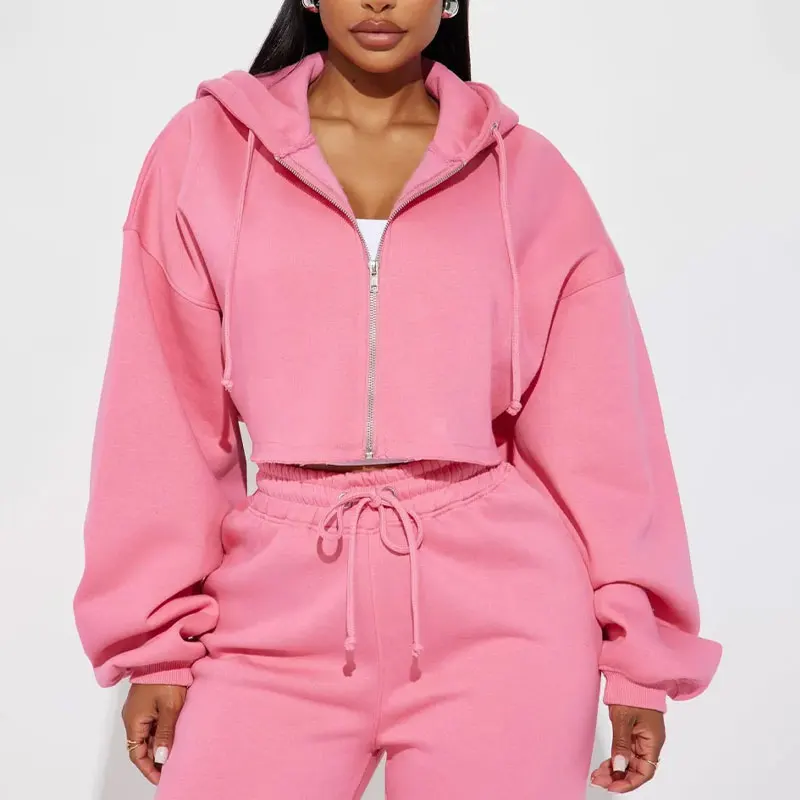 Custom Tracksuits Heavyweight Cotton French Terry Solid Color Hoodie & Pants Jogger Women Crop Top Hoodie and Sweatpants Set