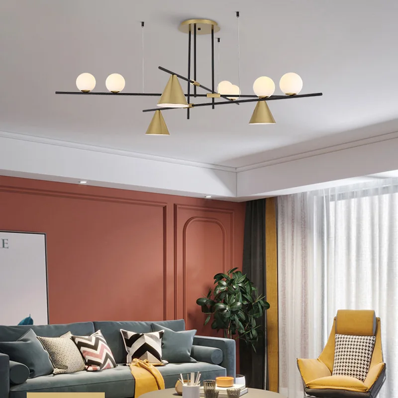 JACKSUN Nordic Living Room Iron Chandelier Modern Simple Light Luxury Lighting Creative Dining Table Bar Study Personalized Line