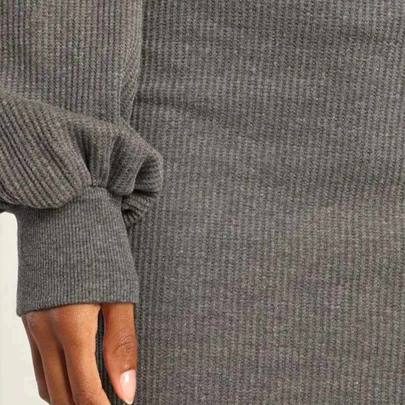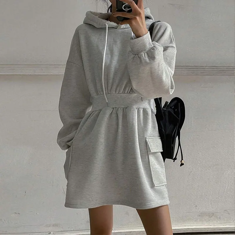 Huili Custom logo High Quality Knitted 1Piece Dress Designer Cotton Long Sleeve Hooded Modest Dress Hoodie Dress for Women Long