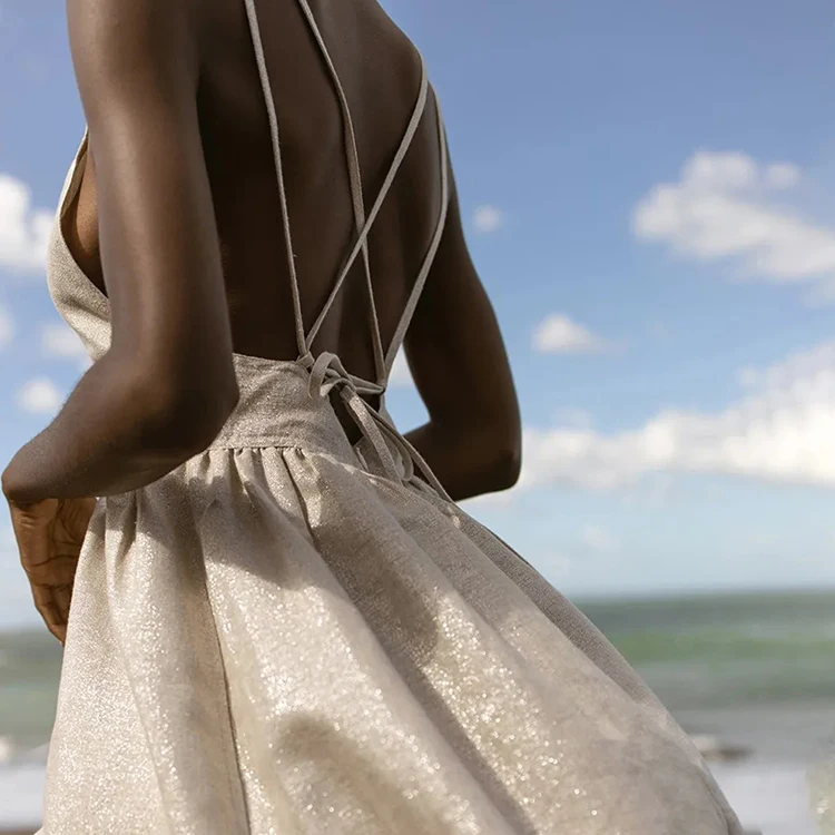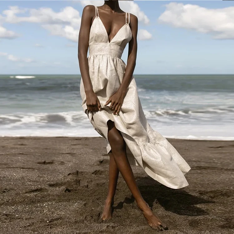 Manufacturer's Custom Summer Bohemian Backless Dress for Women Deep V-Neck Beach Dress Lace-up Cotton Straps Wholesale Solid