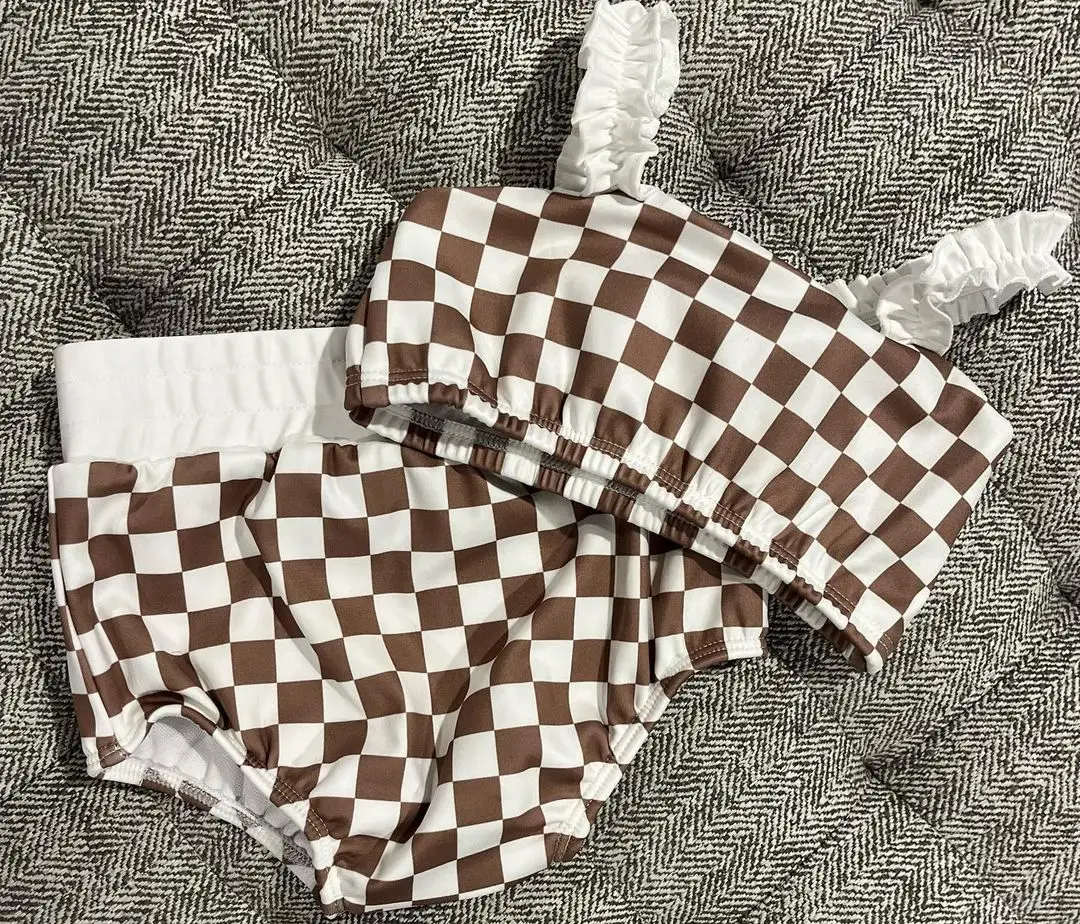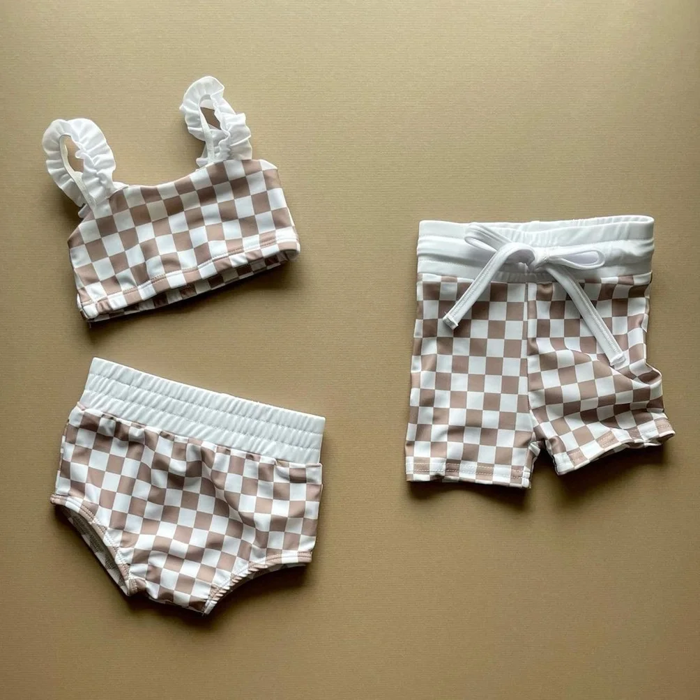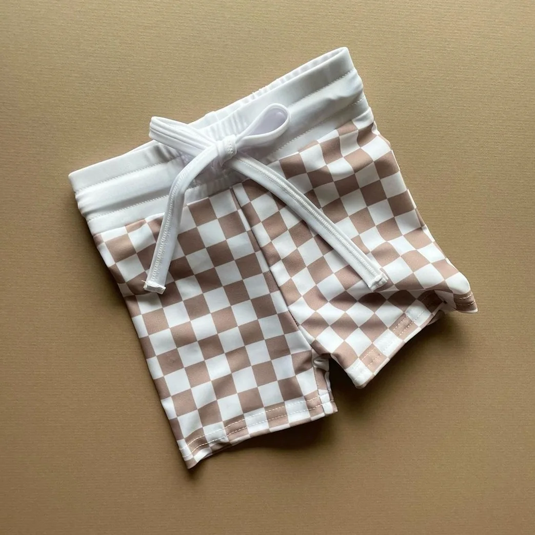 Custom Spandex Men's Drawstring Plaid 2 Piece Set Swim Trunk Shorts Front Waterproof Anti-Bacterial for Summer