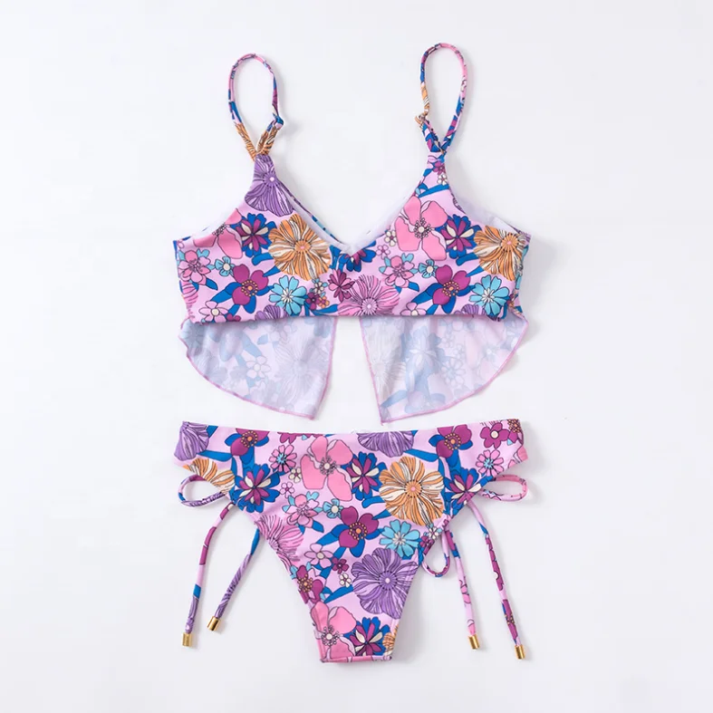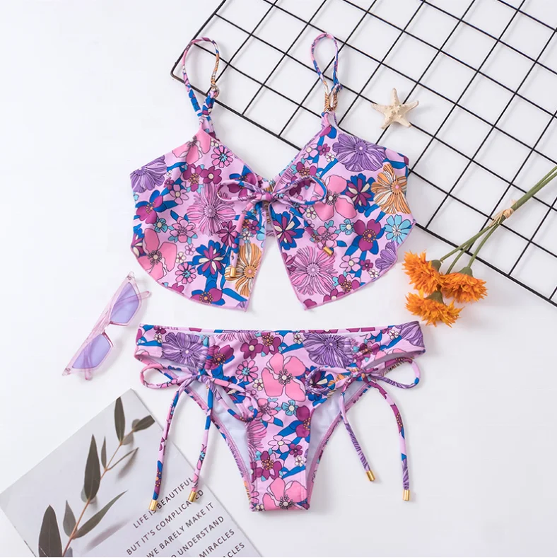 Swimwear Swimsuit Floral Digital Print Swim Fabric Lace-up Two-piece Beachwear Comfortable Best-selling Bikini Set Thongs