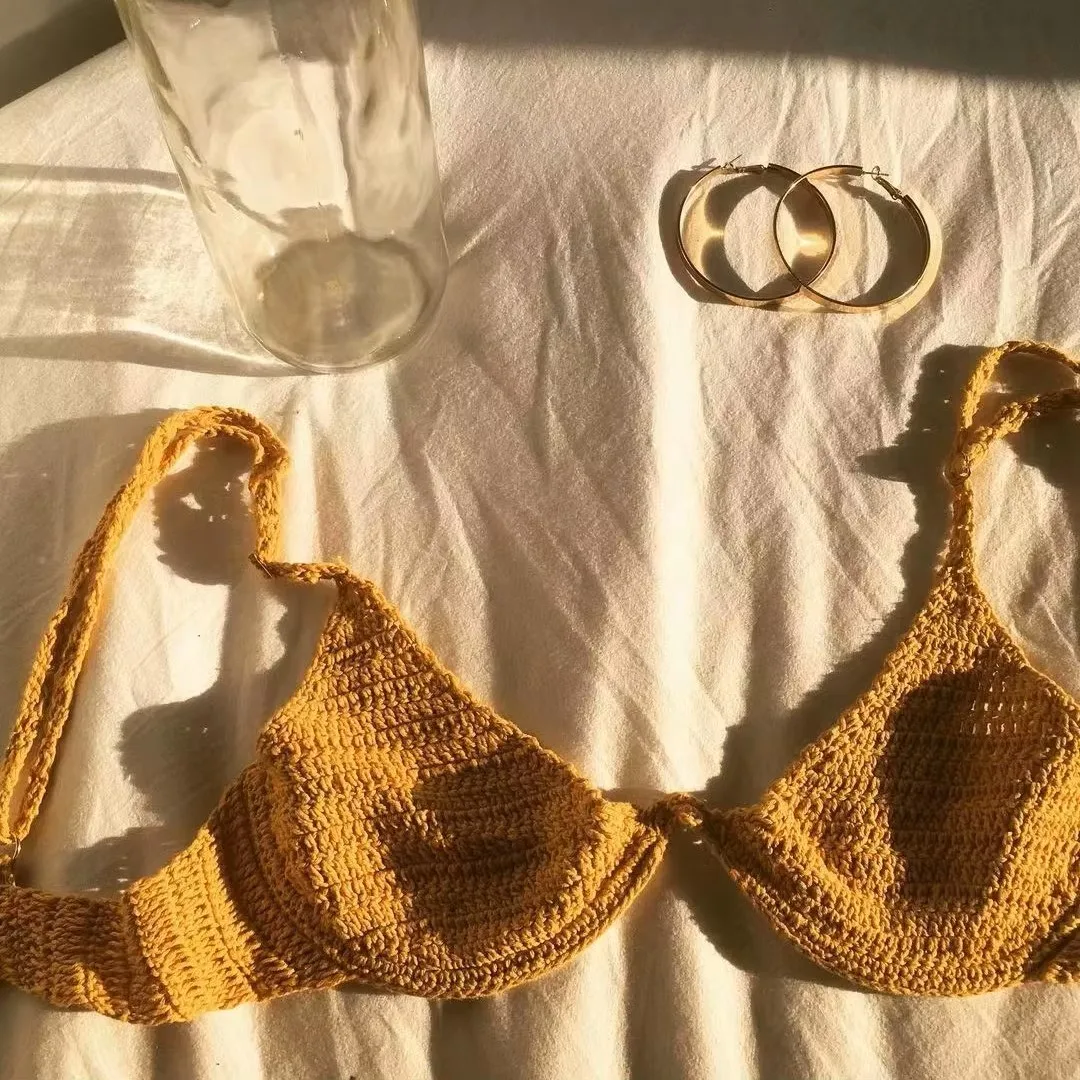 Bikini Manufacturer Custom Swimwear Solid Color Knit Swimsuit Sexy Thong Micro Bikini Underwire Two Piece for Women
