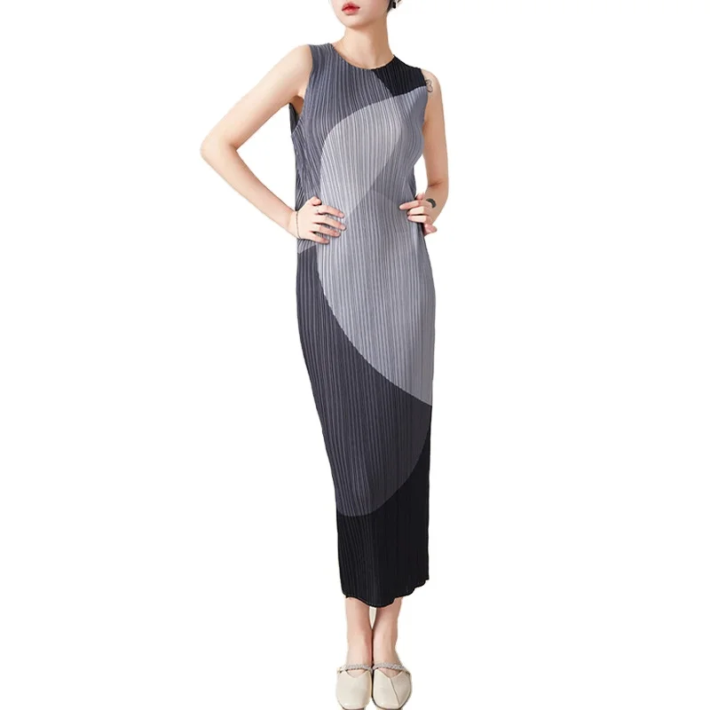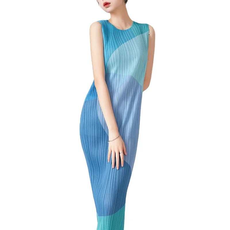Custom High Quality Summer Causal Color Straight Casual Wrinkled Long Dress Ladies Slim Body Fashion Maxi Chic Party Dress