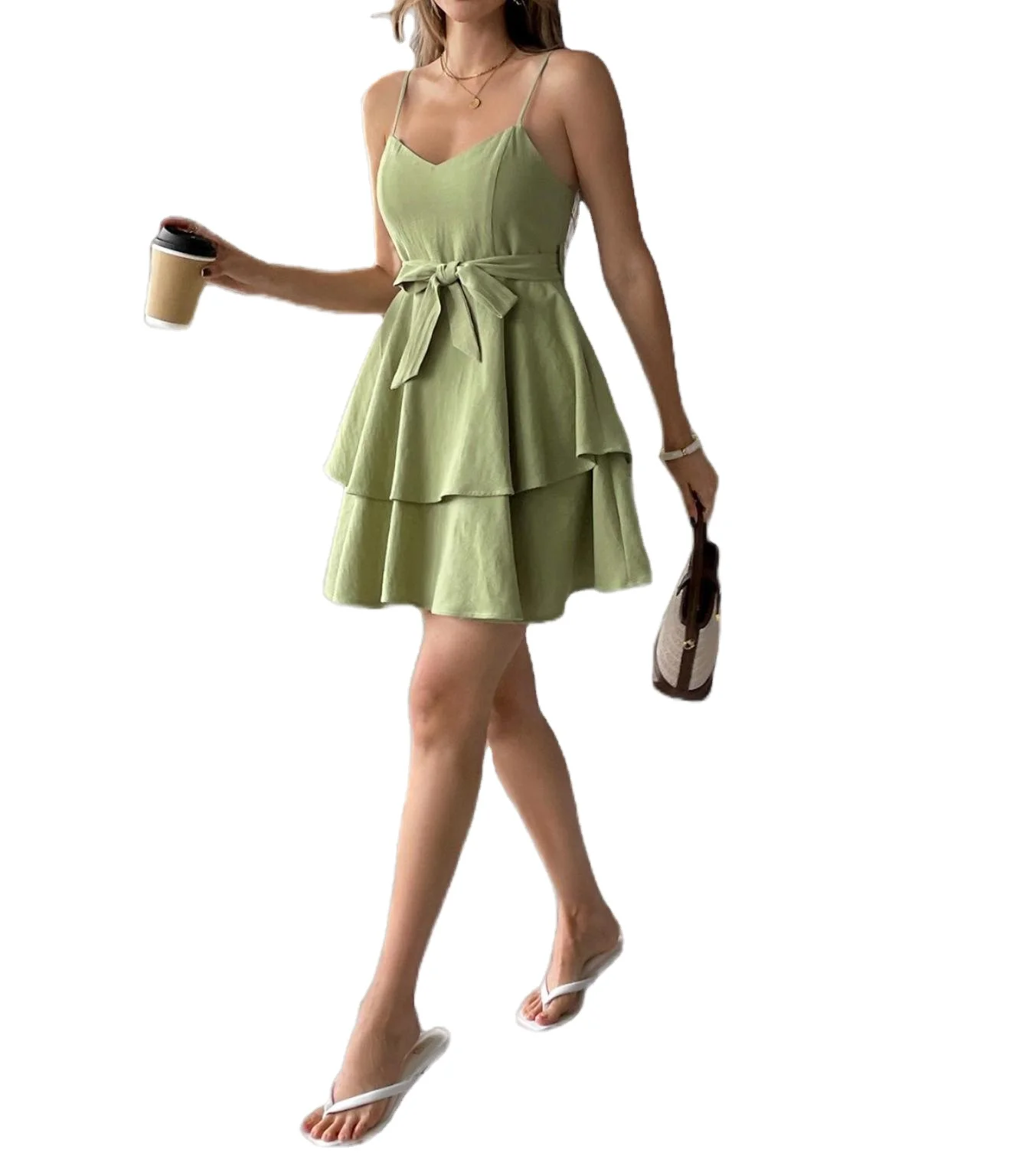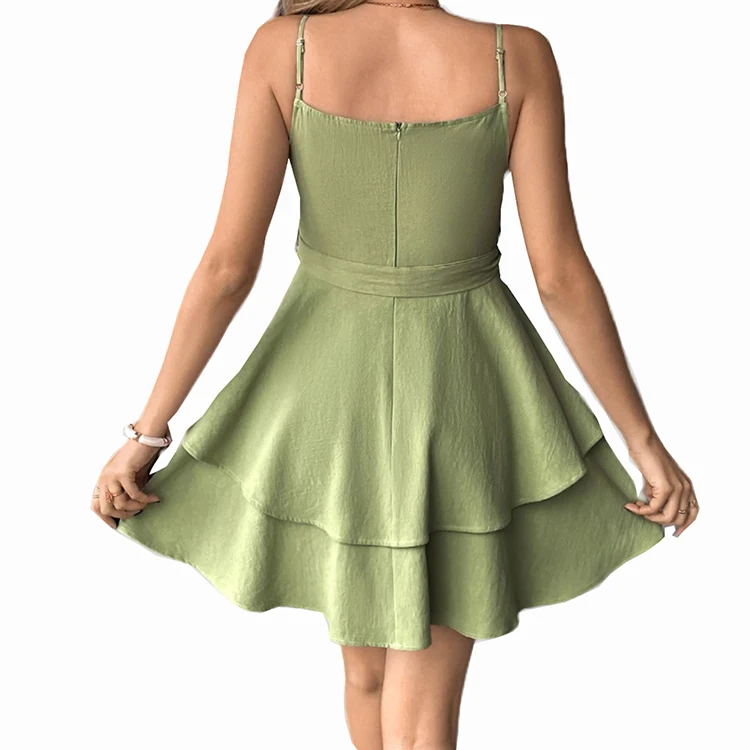 Custom High Quality Summer Causal Dress Sleeveless A-Line Belted High Waist slip Mini Skirt Sweet Style Short Dress