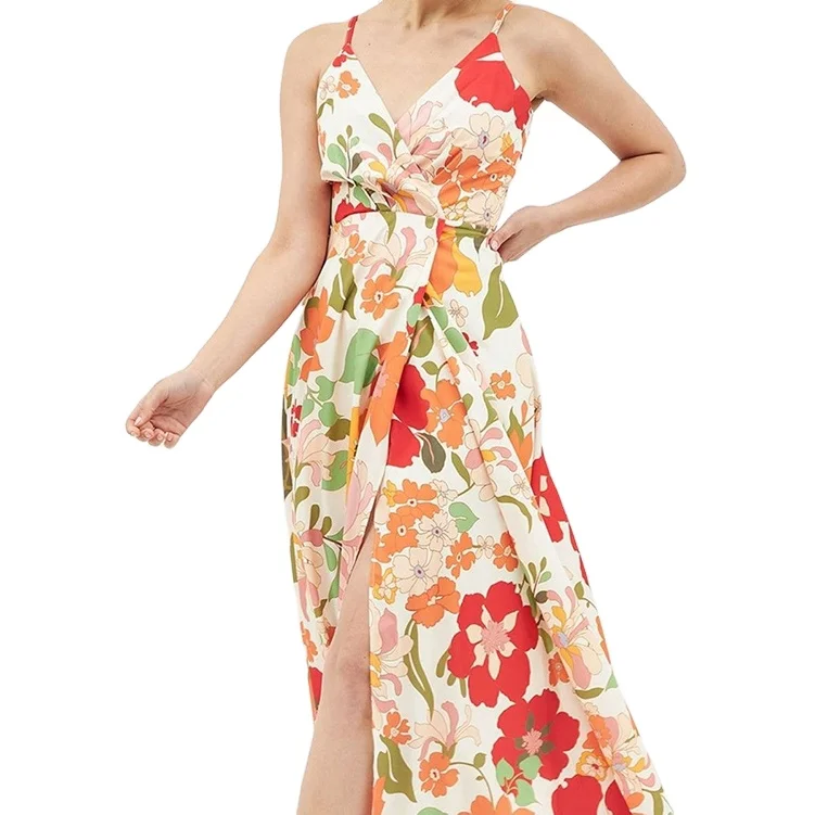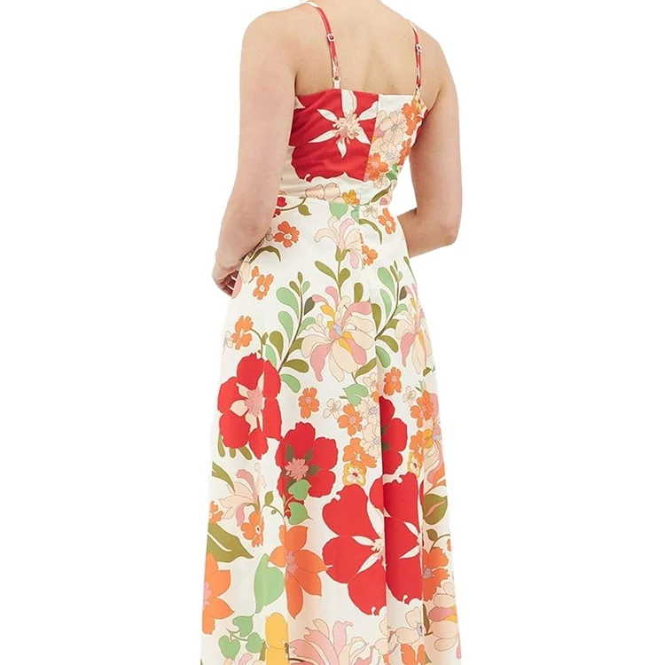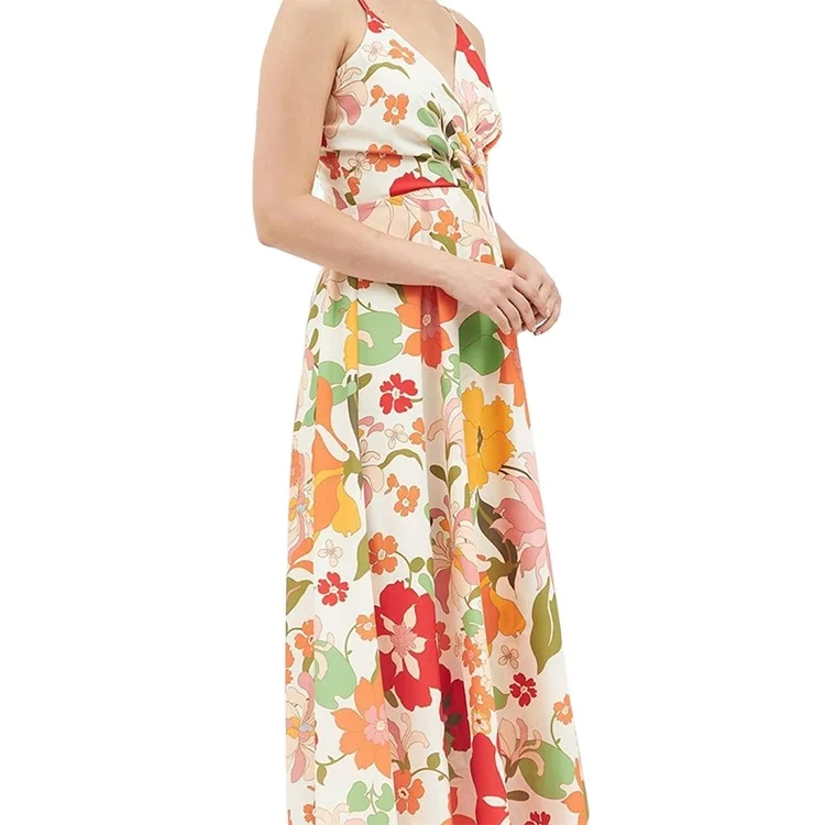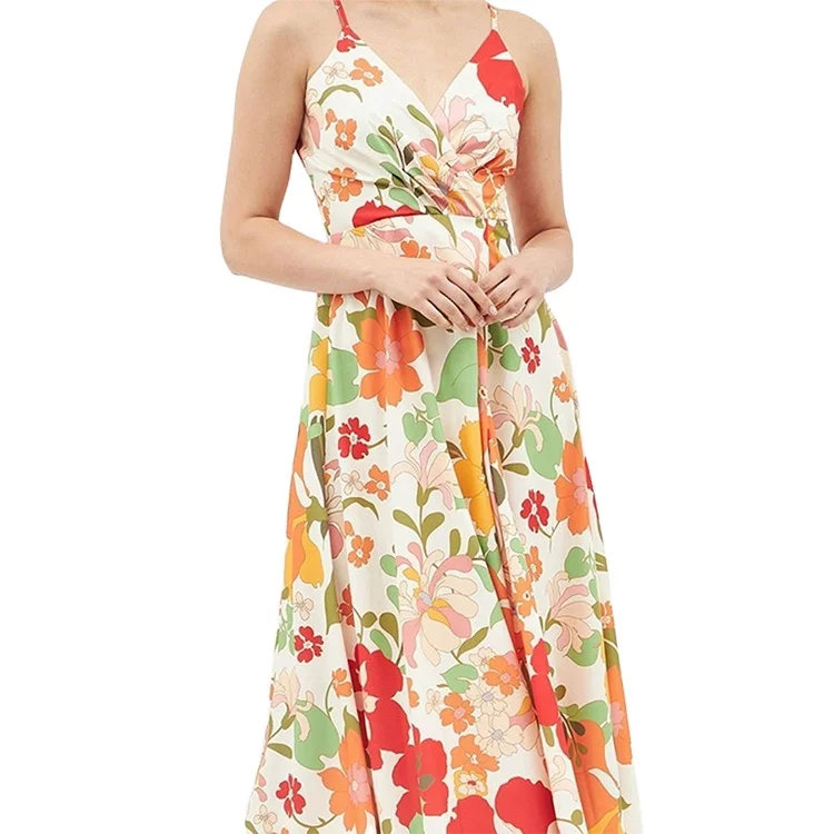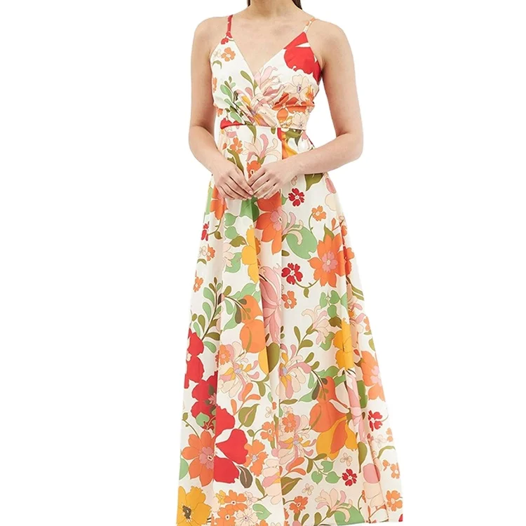 Custom High Quality Spring Summer Lady Elegant Formal Clothing for Women Elegant Official Vneck and Wide Straps Casual Dresses