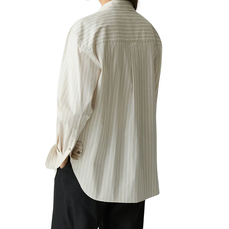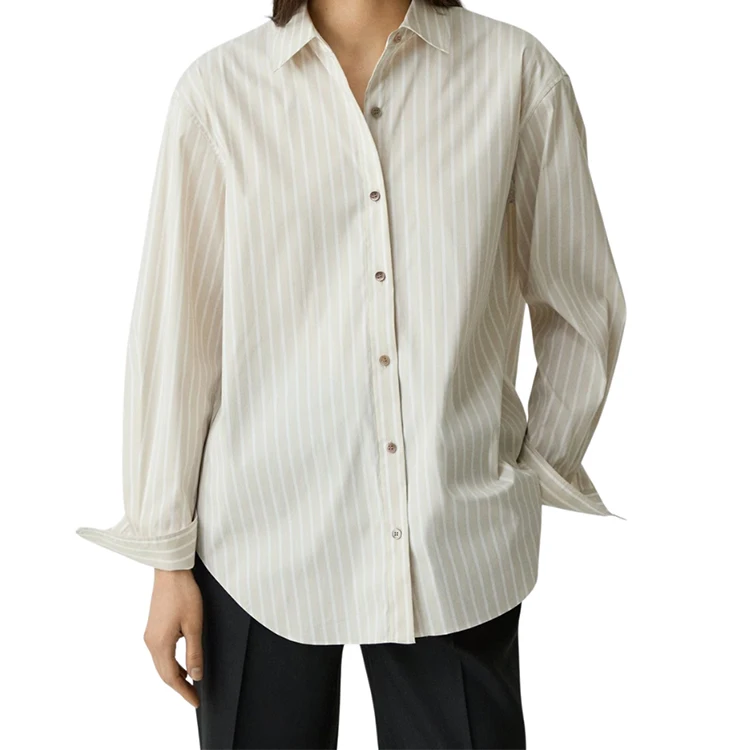 Custom High Quality Spring Autumn Causal Cotton Blouse Long Sleeves Buttons Geometric Pattern Office Tops for Women