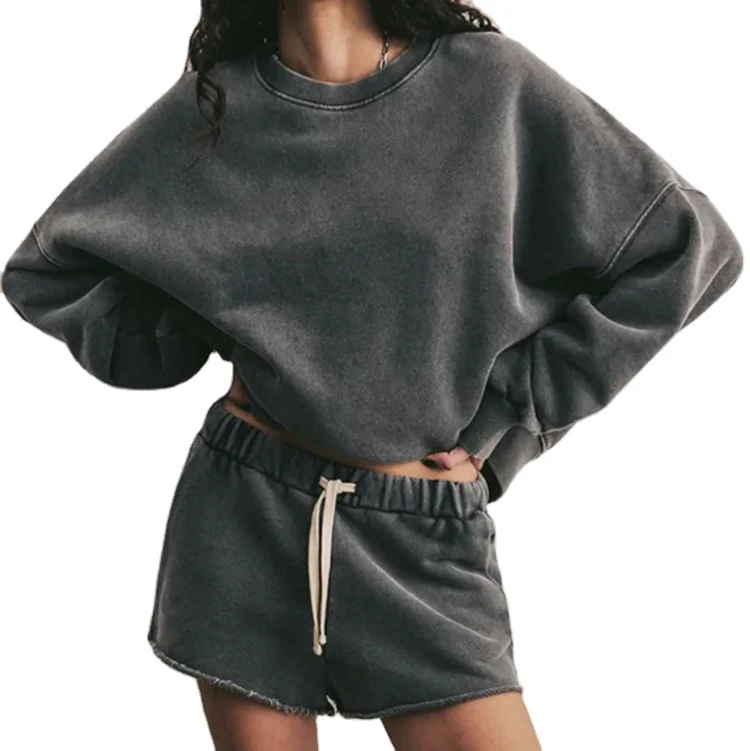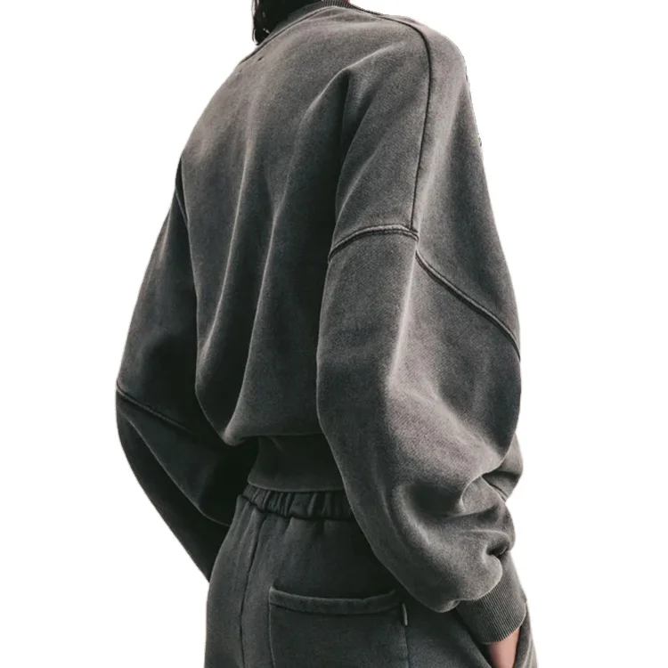 Custom High Quality Casual Crew Neck Drop Shoulder Heavyweight Sweatshirt Vintage Hoodie Unisex Sun Faded Sweatshirt