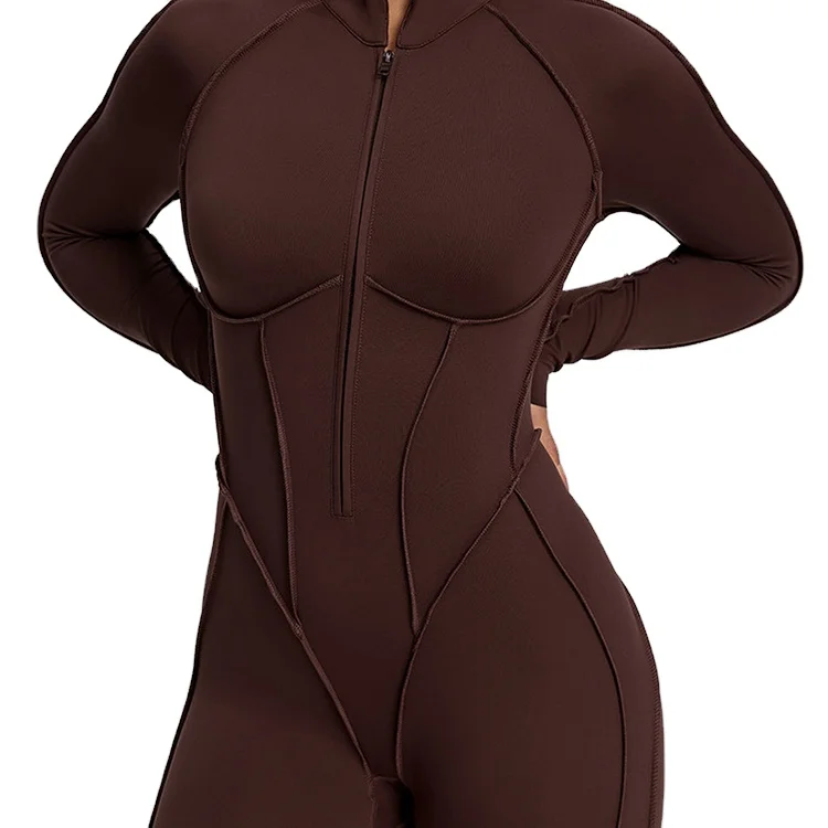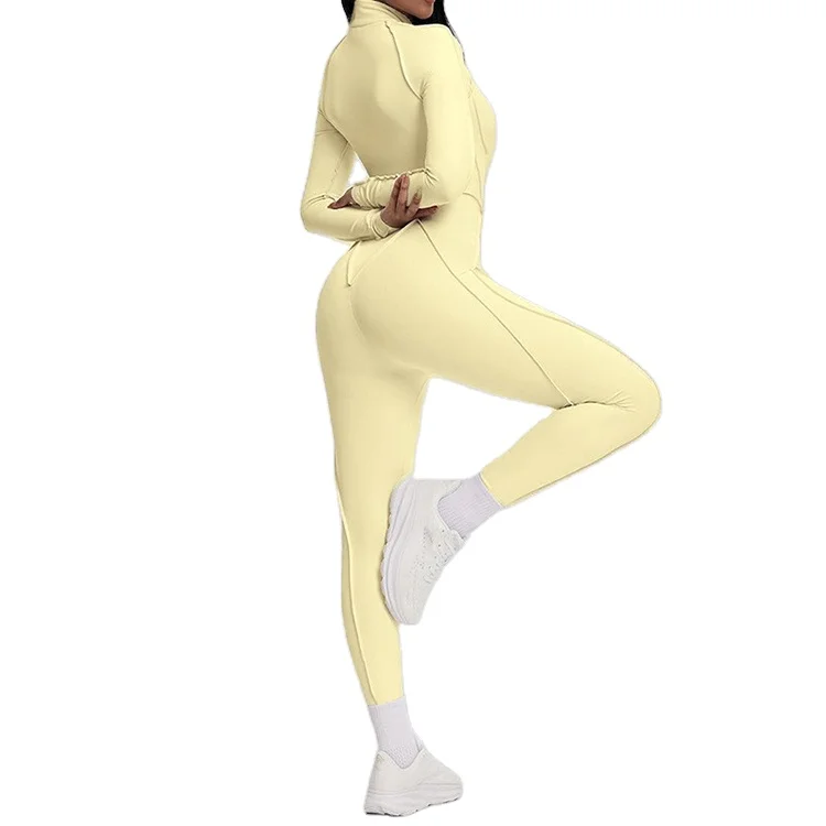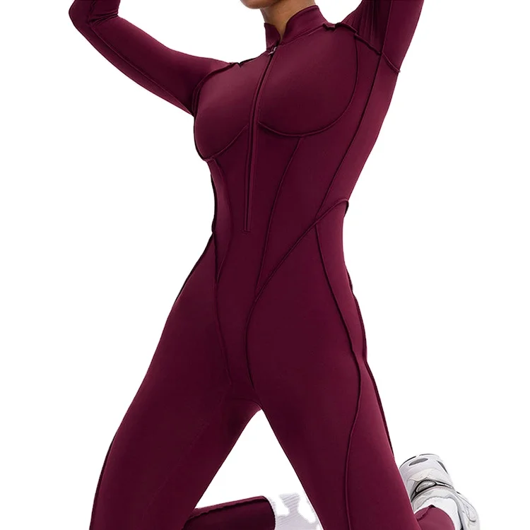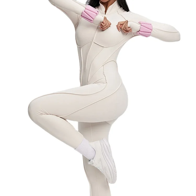 LANGHE Custom High Quality Quick Dry Fitness Yoga Smart Fitness Wear Print Gym Female Set High Neck Zipper One Piece Jumpsuit