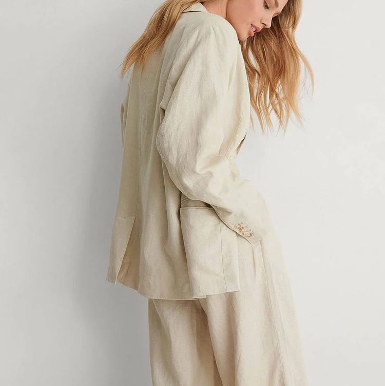Custom High Quality Summer Autumn Classic Turn-down Collar Linen Blazer Office Women Oversized Lapel Premium