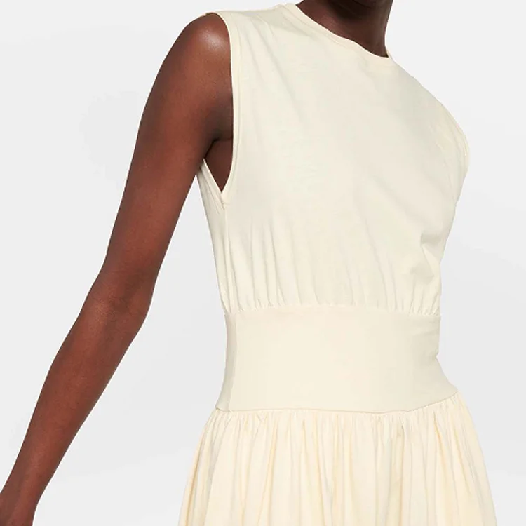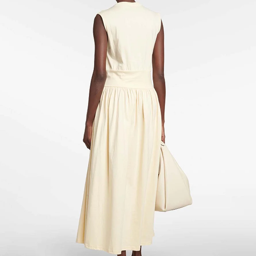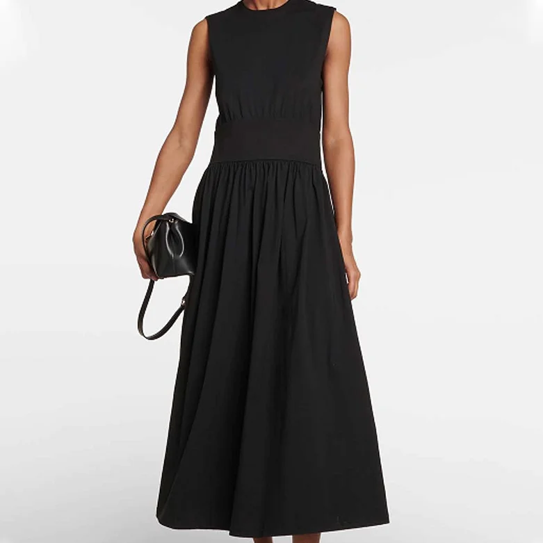 Custom High Quality O Neck A-Line Sleeveless Elastic Waist Loose Solid Cotton Casual Office Lady Maxi Women's Dresses