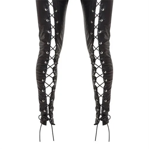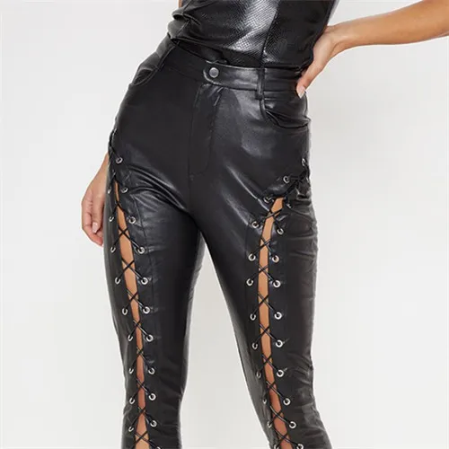 Custom Ladies Black Trousers Party Women's Skinny Leather Strap Trousers