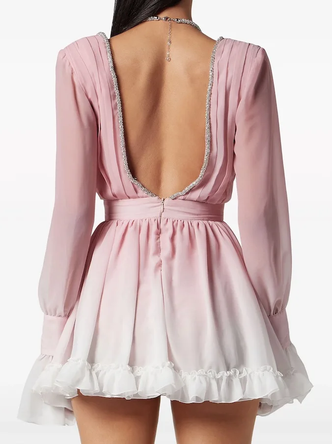 Casual Dress Long Flare Sleeves Solid Color Mini Dress Lovely and Sexy Party Dress
