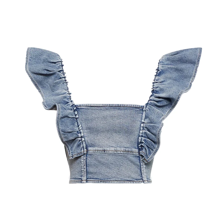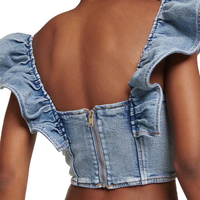 Customized Summer New Women's Sexy Fashion Flare Sleeve Pleated Denim Short Top